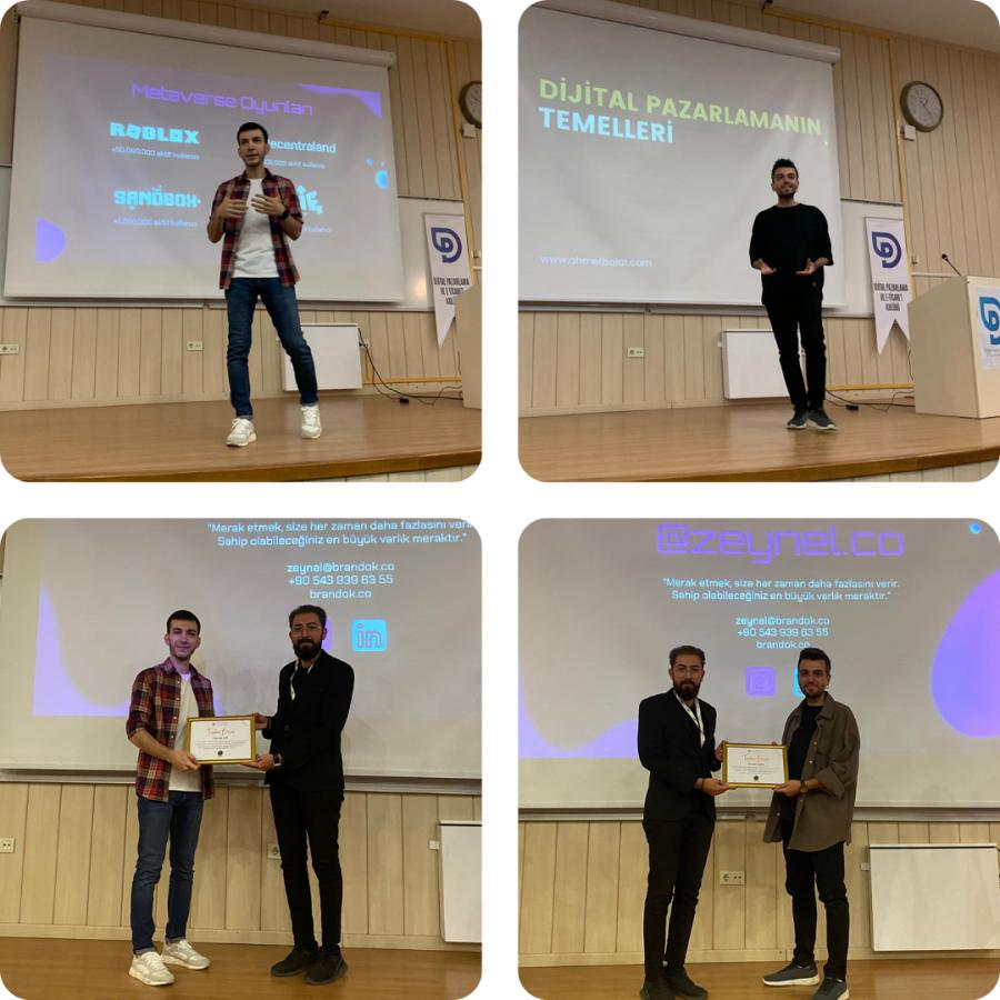 Brandok Dijital Performans Ajansı kurucularından Ahmet BALAT Dijital Pazarlama, E-ticaret meslek dallarının tanımını ve tanıtımını yaptı. Meslek seçimini bu alanlarda yapacak olan öğrencilerin hangi eğitim ve yetkinliklere sahip olması gerektiğini anlattı. Ardından Brandok Dijital Performans Ajansı kurucularından Zeynel ÇİFT Metaverse evreninin kapsamını ve doğru bilinen yanlışları anlattı. Metaverse evrenindeki güncel çalışma ve gelişmeleri aktardı. Etkinlik, katılımcılardan gelen soruların cevaplandırılmasıyla sonlandırıldı.