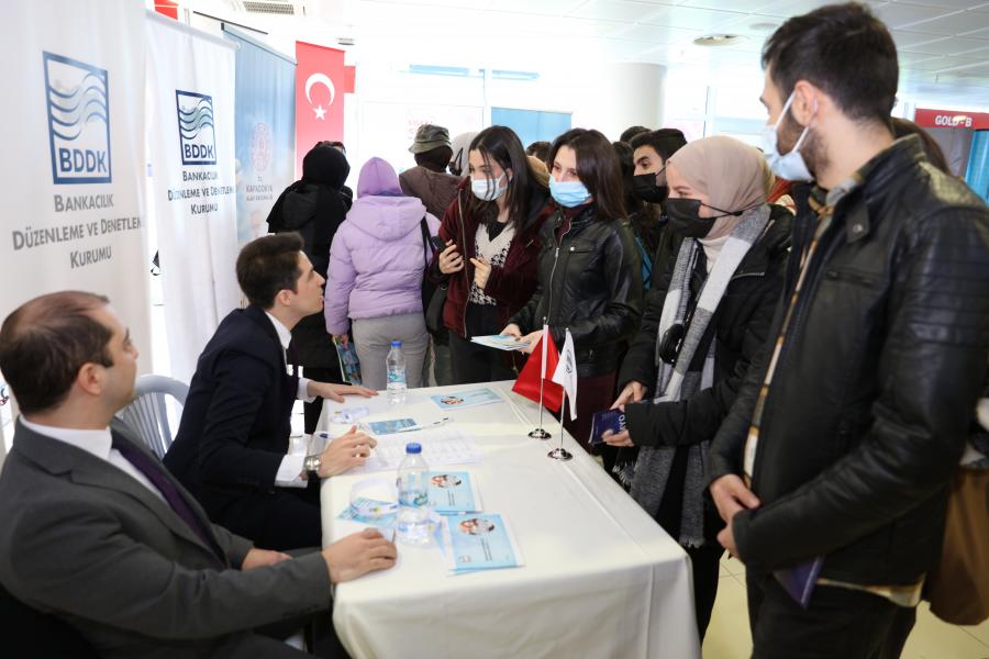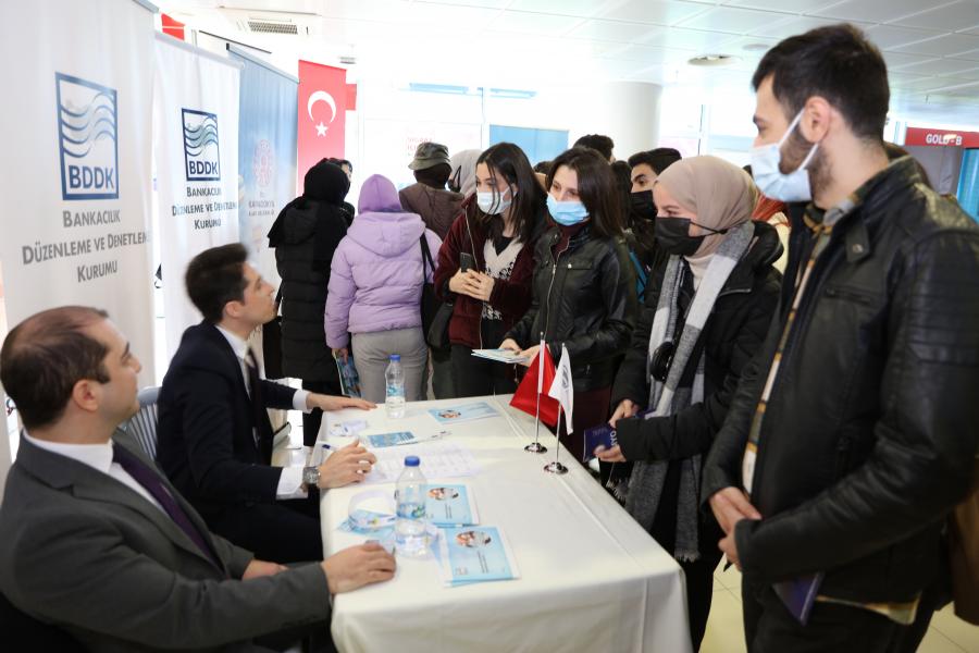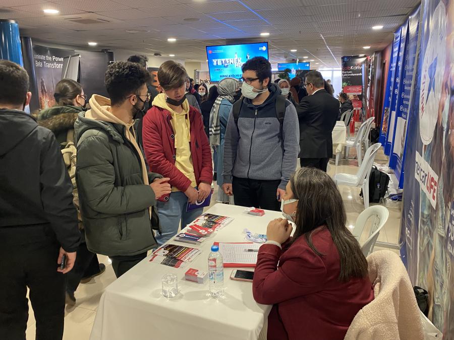 Fuarda A Salonunda Bites Savunma Sanayi Genel Müdürü Uğur ÇOŞKUN’un Savunma Sanayinde Yapay Zeka, Türk Hava Yolları İK İş Geliştirme Şefi Nihal AÇIKEL’in Take-Off ile Kariyerinizde Uçuşa Geçin, Havelsan ARGE ve Mühendislik Direktörü Serkan GÜMRÜKÇÜOĞLU’nun Havelsan ve Açık Kaynak Yazılımları, Türksat Ürün Yönetim Uzmanı Sn. Aydın ZAİM’in Haberleşme Uyduları, Uyduların Yapısı, Leo Uydular, 6a Uydusu ve SLS (Space Launch System), T3 Vakfı Müdürü ve TEKNOFEST Genel Sekreteri Ömer KÖKÇAM’ın Milli Teknoloji Hamlesi Yolculuğunda T3 Vakfı ve TEKNOFEST, Kastamonu Entegre İş Planlama ve İnovasyon Direktörü Dr. Hüseyin GÜLER’in Vuca Dünyasında İnovasyonla Fark Yaratmak!, TÜBİTAK BİDEB Başkanı Doç. Dr. Ömer Faruk URSAVAŞ’ın ARGE ve Yenilik Ekosisteminde TÜBİTAK BİDEB Destekleri, Türk Havacılık ve Uzay Sanayii’nden Dr. Nilüfer KÖSE ve Hümeyra YOLCU’nun Türk Havacılık ve Uzay Sanayii'de Kariyer ve Yaşam, ASELSAN Fatma Büşra TAŞTAN’tan ASELSAN'da Yaşam, B Salonunda Adım Patent’ten Seval YILMAZ’ın Patent Okur Yazarlığı, Bordatech IoT ile Sağlık Süreçlerinde Verimlilik, Teol Dil Okulları Genel Müdür Yardımcısı Derya GÜLEÇ ve Teol Dil Okulları Trabzon Şubeler Müdürü Bünyamin DÜLGER’in Türkiye’deki Yabancı Dil Eğitimi ve İngiltere’deki Yabancı Dil, Üniversite ve Gönüllü Staj Programları, Livera Yayınevi’nden Kerem IŞIK’ın Kâğıttan Sisifoslar: Günümüz Dünyasında Editörlük, Yayıncılık ve Çevirmenlik, Esri Türkiye Eğitim Yaygınlaştırma ve Geliştirme Yöneticisi Asena ÇAKIR’ın İş Hayatında Coğrafi Bilgi Sistemleri, Devlet Hava Meydanları Hava Trafik Kontrolörü Sn. Osman Erşan ARIKAN’ın Hava Trafik Kontrolörlüğü Mesleği, HUAWEI Türkiye Ar-Ge Merkezi Direktör Yardımcısı Boran DEMİRCİLER’in HUAWEI Türkiye Ar-Ge Merkezi, Orman Mühendisleri Odası Genel Başkanı Hasan TÜRKYILMAZ’ın STK’larda Örgüt Yönetimi, Türkiye Gemi İnşa Sanayicileri Birliği (GİSBİR) İnsan Kaynakları Komisyonu Başkanı AV. Sevda Zübeyde ÇETİN ve İnsan Kaynakları Komisyonu Danışmanı Cumhur KUTER’in Gemi İnşaat Sektörünün İş İmkanları, Staj Olanakları, C Salonunda Trabzon İl Sağlık Müdürlüğü Daire Başkanı Gökhan AKTÜRK’ün Sağlık Hizmetlerinde İstihdam ve Sağlıkta Yaşanan Sıkıntılar ve Tedbirler, Trabzon Silah Sanayi İnsan Kaynakları Müdürü Yeşim SOYCAN’nın İstihdamda Yeni Trendler, T. C. Millî Savunma Bakanlığı Halkla İlişkiler ve İletişim Uzmanı Murat KURUYER’in Şanlı Geçmiş, Şerefli Görev, Saygın Bir Gelecek, Adalet Bakanlığı Trabzon Adliyesi Cumhuriyet Başsavcı Vekili Tamer BAYRAKTAR’ın Hukukumuzda Cumhuriyet Savcılığı, Vezirköprü Ar-Ge Müdürü Nebahat DEMİR’in Ar-Ge - İnovasyon - Sektörel Deneyim, Uğur Sağlık Simülasyon Sistemleri Sistem Mühendisi Mehmet Nuri ÇETİN ve CEO Yurdanur MURZOĞLU’nun Sağlık Eğitiminde Simülasyon Teknolojileri ve Sanal Gerçeklik Uygulamaları, Türkiye Ulusal Ajansı Uzman Yardımcısı Yasin DÖNMEZ’in Erasmus+ ve Avrupa Dayanışma Programları, Çoruh Elektrik Dağıtım A.Ş. Kurumsal İletişim Direktörü Büşra SARIİSMAİL’in Kariyer Yolculuğunda İletişim sunumları gerçekleşmiştir. Eğitim Locasında Trabzon Teknokent’ten Doğaç TOPAL’ın Kendi Kariyer Planını Kendin Yap, KTÜ Erasmus Ofisi’nin Öğrencilerin Erasmus Hareketi, Adalet Bakanlığı Trabzon Adliyesi Ağır Ceza Mahkemesi Başkanı ve Adalet Komisyonu Başkanı Özkan TAVUZ’un Hukuk Sisteminde Ceza Yargılaması, Pegem’den Fatih AYDIN’ın Kpss Bilgilendirme Semineri, LÖSEV Halkla İlişkiler Uzmanı Deniz GÖRMEZ’in Lösev Tanıtım Semineri (Lösev'in Kuruluşu, Yapılan Yardımlar, Gönüllülük), Hazine ve Maliye Bakanlığı’nın Staj Mülakatı, TÜİK Eğitim Daire Başkanlığı Organizasyonel Gelişim Grup Başkanı Gönül KALENDER’in TÜİK'in Faaliyet Alanları ve Kariyer İmkanları, DEGZ Robotik Kaan ÖZTÜRK ve Kadir YAZICI’nın Sualtı Robotiği ve Milli Teknoloji, KTÜ Teknoloji Transfer Ofisi Proje Uzmanı Eren YILMAZ’ın Girişimcilik, Sigmacert Akademi Sigmacert Şirketler Grubu Yönetim Kurulu Başkanı Mustafa CİHAN’ın Kalite Bir Meslektir, Avrasya Danışmanlık Yönetim Danışmanı İltizam Seyda DURGUN’nun Kelebek Etkisi (Bir Çivi Çak Hayatına), 2. locada Çamsan Ordu Ağaç Sanayi’nin Kurum kültüründen ve şirket işleyişinden bahsetme, işe alım süreçleri, staj ve iş mülakatları, 3. locada Starwood Orman Ürünleri’nin öğrencilerle birebir görüşmesi, 4. locada Vezirköprü Orman Ürünleri ve Kağıt Sanayi’nin iş görüşmesi ve mülakatı, 5. locada Çamsan Entegre Ağaç Sanayi’nin firmanın kurum kültürü ve işleyişi hakkında bilgilendirme, iş başvurusu toplama, broşür ve dergi dağıtımı, 6. locada Kastamonu Entegre’nin şirket faaliyetleri hakkında bilgilendirme, staj programları hakkında bilgilendirme ve online başvuru, 7. locada A101 Yeni Mağazacılık’ın kurum kültürü ve firmanın işleyişinden bahsetme, iş başvuruları, 8. locada Metro Türkiye’nin mülakat simülasyonu, 9. locada LOGO Yazılım’ın öğrencilerle birebir görüşmesi, 10. locada Akgün Bilgisayar Program ve Hizmetleri’nin öğrencilerle birebir görüşmesi, 11. locada Simsoft Bilgisayar Teknolojileri’nin kurum kültürünün tanıtılması ve broşür, katalog dağıtımı, öğrenci staj talepleri ve uygun pozisyonlara göre öğrencilerle küçük mülakatlar yapılması, firma slayt ve sunumların ziyaretçilere sunulması, 12. locada Cemilusta’nın stantta görüştükleri öğrencilerden uygun olanlar ile işe alım süreçleri ve mülakat görüşmeleri, 13. locada T.C. Ulaştırma ve Altyapı Bakanlığı’nın kendi kuleni kendin tasarla ve Avrupa’nın en uzun tüneli Zigana Tüneli, 14. loca