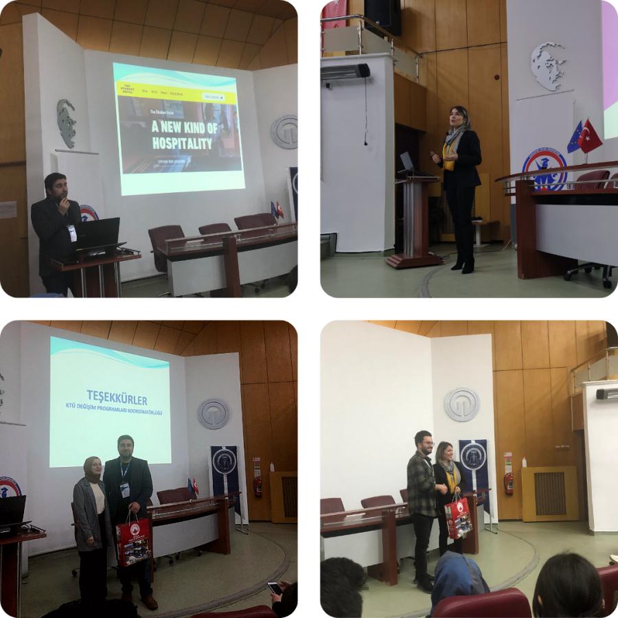 Karadeniz Teknik Üniversitesi (KTÜ) Kariyer Geliştirme Uygulama ve Araştırma Merkezi, European Medical Students’ Association (EMSA) ve Avrupa Birliği Kulübü’nün düzenlediği İş Kulübü Lideri İş ve Meslek Danışmanı Emel ŞAHİNLER ve Erasmus+ Öğrenci Staj Sorumlusu Öğr. Gör. Şener KARAOSMANOĞLU’nun konuşmacı olduğu “Europass ve Erasmus+ CV Hazırlama Eğitimi” etkinliğimiz 8 Nisan Cuma günü saat 14.00’da KTÜ Tıp Fakültesi Aydın İnal Amfisi’nde 105 öğrencimizin katılımıyla gerçekleştirilmiştir. Öğr. Gör. Şener KARAOSMANOĞLU, Erasmus+ Programı’nın tanıtımı ve öğrencilerin nasıl katılım sağlayacakları hakkında bilgilendirme yaptı. İş Kulübü Lideri İş ve Meslek Danışmanı Emel ŞAHİNLER ise Europass programından ve Europass ile CV hazırlama tekniklerinden bahsetti. Etkinlik sonunda konuşmacılara hediyeleri verildi. Katılımcıların soruları cevaplandırılarak ektinlik sonlandırıldı.
