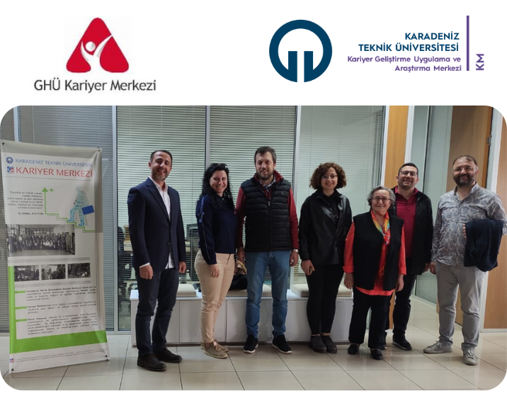 KTÜ KM'den Müdür Prof.Dr. Hülya KALAYCIOĞLU, Müdür Yardımcısı Öğr. Gör. Ahmet KÜÇÜK, Yönetim Kurulu Üyeleri Doç. Dr. Canan AKSOY ve Dr. Öğr. Üyesi Hasan ÖLMEZ'in misafirleri ağırladığı ziyarette üniversite öğrencilerinin mezuniyet öncesi duraklarından biri olan kariyer merkezlerinin öğrenciler için yapılan ve yapılabilecek etkinlikler, seminerler, eğitimler ve kariyer noktasında gelişimlerine destek olabilecek faaliyetleri hakkında fikir alışverişlerinde bulunuldu. GÜKAR yönetim kurulu üyelerine ziyaretleri için teşekkür ederiz.