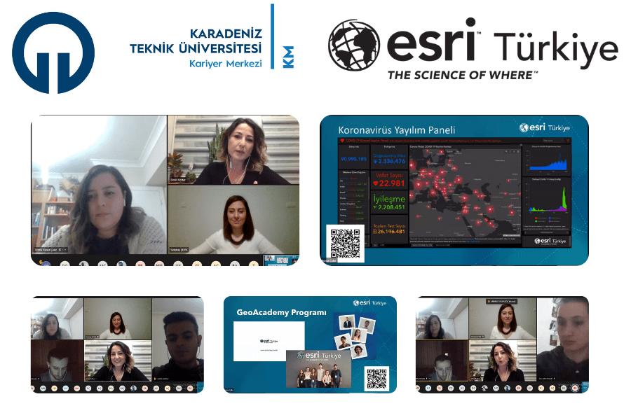 “İş Hayatında Coğrafi Bilgi Sistemleri ile Bir Adım Önde Olun” semineri Esri Bilgi Sistemleri Mühendislik ve Eğitim Ltd. Şti. desteğiyle 14 Ocak 2021 tarihinde online olarak gerçekleştirildi. Esri Eğitim Sektörü Lideri Deniz KÖFTER ve Eğitim Sektörü Hesap Yöneticisi Fatma Asena ÇAKIR’ın konuk olduğu eğitimde Coğrafi Bilgi Sistemlerinin (CBS) tanımı yapıldı ve kullanım alanlarından bahsedildi. Öğrencilerin gelecekteki iş hayatlarında ArcGIS platformu üzerinden CBS’yi en iyi şekilde nasıl kullanabilecekleri anlatılarak ve ihtiyaç duyulabilecek önemli bilgiler verildi.