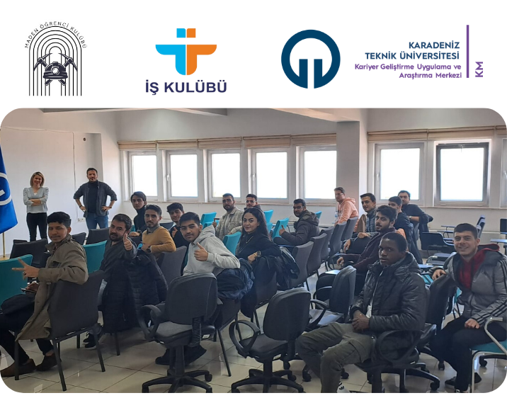 KTÜ Kariyer Geliştirme Uygulama ve Araştırma Merkezi (KM), KTÜ Maden Öğrenci Kulübü ve İş Kulübü’nün düzenlediği “İş Arama Becerileri” başlıklı etkinlik 7 Aralık 2022 tarihinde KM Seminer salonunda gerçekleştirildi.