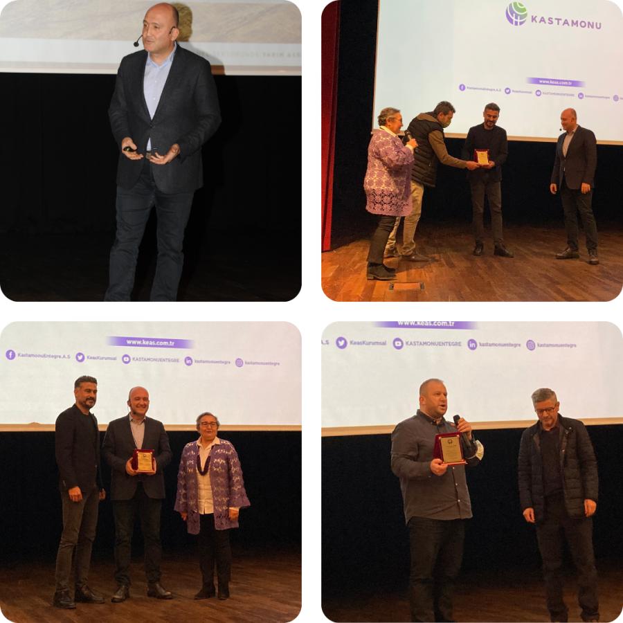 Konuşmacımız; Kastamonu Entegre ve Hayat Kimya firmaları hakkında genel bir bilgilendirme yaptıktan sonra Kastamonu Entegre olarak yurtiçi ve yurtdışı üretim faaliyetlerinden, devam eden yatırımlarından, dünya pazarında söz sahibi bir firma olduklarından ve Türkiye ekonomisine önemli bir ihracat girdisi sağlıyor olduklarından söz etti. Konuşmacımız ayrıca çevre ve sürdürülebilirlik adına attıkları adımlara ve yürüttükleri faaliyetlere de değindi.