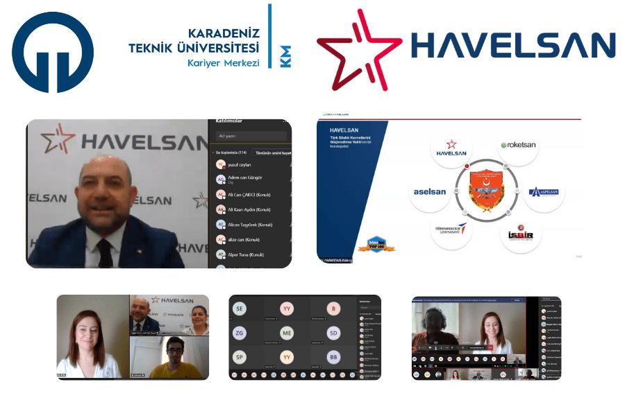 “Kariyer Yolculuğu” semineri KTÜ Kariyer Merkezi tarafından 10 Şubat 2021 tarihinde online olarak gerçekleştirildi. Kariyer Merkezi Koordinatör Yrd. Öğr. Gör. Setenay ŞEVİK'in moderatörlüğündeki seminerde HAVELSAN Genel Sekreteri Baykal YAYLI sunum yaptı. Baykal YAYLI sunumunda HAVELSAN çalışma mekanizması, aldığı ödüller ve üniversite öğrenci ve mezunlarına değişen ve gelişen iş kollarından faydalanabilecekleri staj ve iş imkanları hakkında ipuçları verildi.
