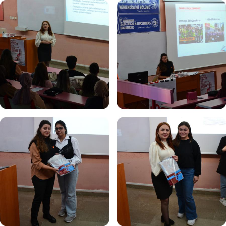 KTÜ Kariyer Geliştirme Uygulama ve Araştırma Merkezi ile KTÜ Lösemili Çocuklara Fayda Topluluğunun düzenlediği “LÖSEV’de Gönüllülük ve Kanser Farkındalığı” etkinliği 22 Ekim 2022 tarihinde KTÜ Elektrik Elektronik Mühendisliği Bölümü Halis Duman Amfisi’nde gerçekleştirildi.