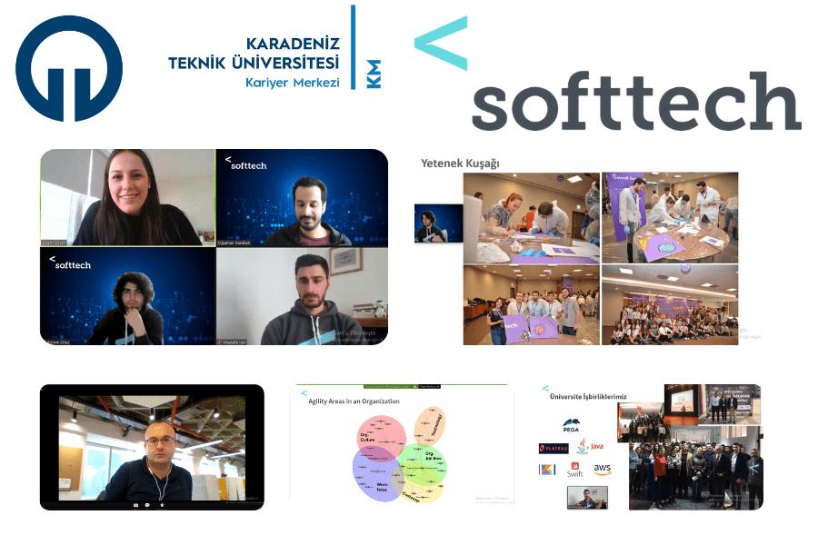 KTÜ Kariyer Merkezi tarafından düzenlenen “Teoriden Pratiğe Yazılım Teknolojileri Buluşmaları” semineri 18 Ocak 2021 tarihinde online olarak gerçekleştirildi. Softtech Firması çalışanlarından Gizem GÜVEN, Kerem ORUÇ, Mustafa İÇER, Okan BESLİ, İrem DOĞAN ve Oğuzhan KARAMAN’ın yaptığı sunumda toplumun dijital çağın ihtiyaçlarına uygun çözüm arayışlarından bahsedildi. Merhaba Softtech, Yenilikçi Teknolojiler, Softtech'te Çevik Yaklaşım , Makine Öğrenmesi ve Doğal Dil İşleme, KTÜ'den Softtech'e İşe Başlama Serüveni ve Softtech'te Hayat konu başlıkları altında mühendislik fakültesi öğrencileri veya yeni mezun katılımcıların birçok alanda fayda sağlayabilecekleri Softtech şirketinde, stajyer yada tam zamanlı olarak çalışma fırsatı elde edebileceği ifade edildi.