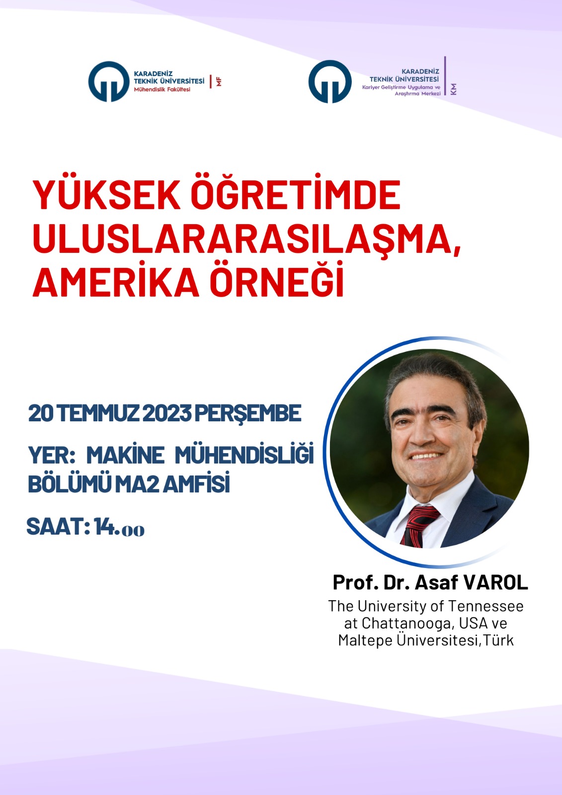 KTÜ Kariyer Geliştirme Uygulama ve Araştırma Merkezi ile KTÜ Mühendislik Fakültesi’nin düzenlediği “Yükseköğretimde Uluslararasılaşma, Amerika Örneği” etkinliği, Rektör Yardımcımız Prof. Dr. Halil İbrahim OKUMUŞ, Kariyer Merkezi Müdür Yardımcımız Prof. Dr. Hülya KALAYCIOĞLU, KTÜ Mühendislik Fakültesi Dekanımız Prof. Dr. Gençağa PÜRÇEK ve üniversitemizin farklı bölümlerinden akademisyen ve öğrencilerinin katılımı ile 20 Temmuz 2023 tarihinde Makine Mühendisliği MA2 amfisinde gerçekleştirildi.