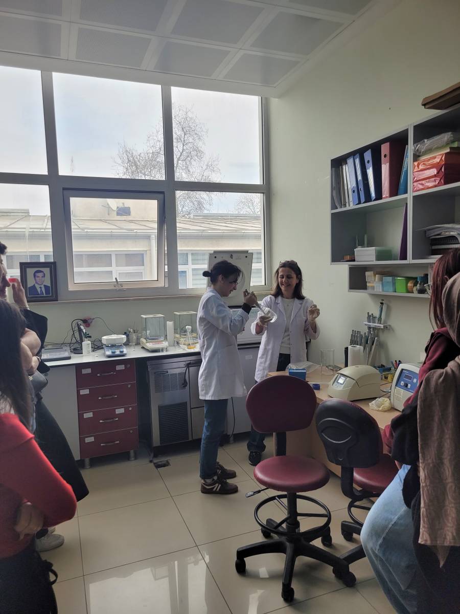 "Öğrencilerimizin mesleki ve kişisel gelişimine yönelik düzenlenen etkinlik sayısı" kapsamında Prof. Dr. Nagihan Sağlam Ertunga tarafından yürütülen Biyokimyada İleri Teknikler dersi kapsamında dersi alan öğrenciler için 1 Nisan Çarşamba günü saat 10:00’da protein saflaştırma üzerine uygulamalı laboratuvar workshop’u gerçekleştirildi. Gerçekleştirilen bu etkinlik, öğrencilerin teorik bilgilerini pratiğe dönüştürmeleri açısından önemli bir fırsat sundu. Düzenlenen workshop, öğrencilerin doğrudan bir araştırma laboratuvarı ortamında bulunarak güncel biyokimyasal teknikleri yerinde gözlemlemelerine ve uygulamalarına imkân tanıdı.