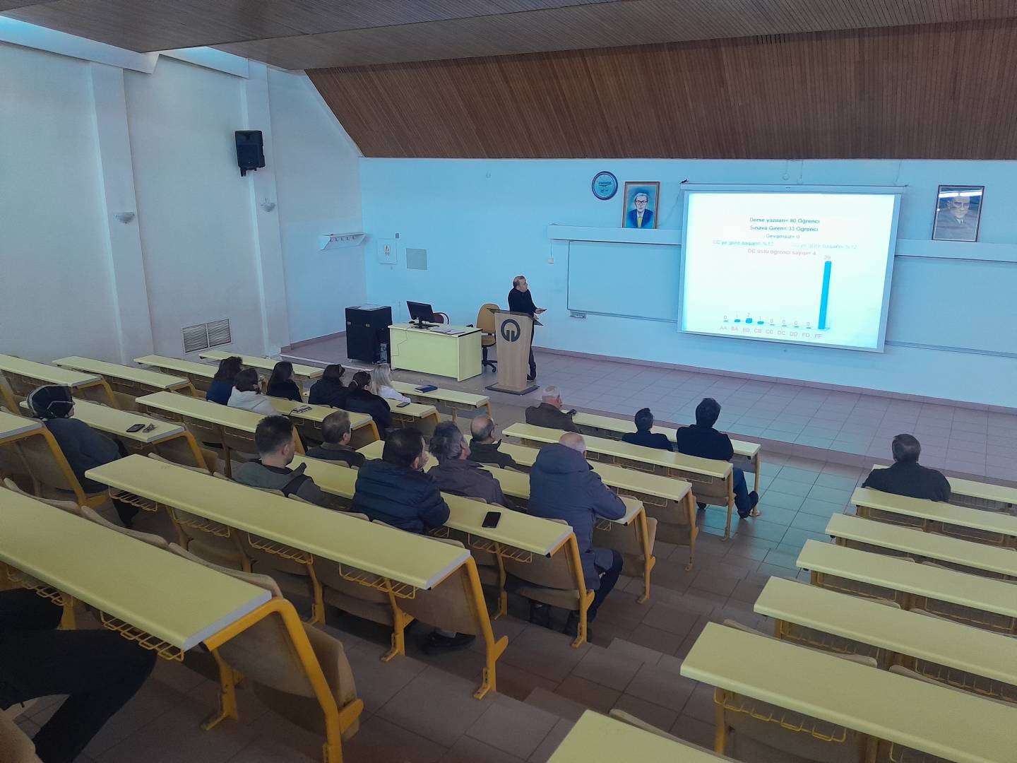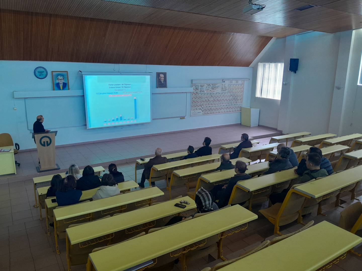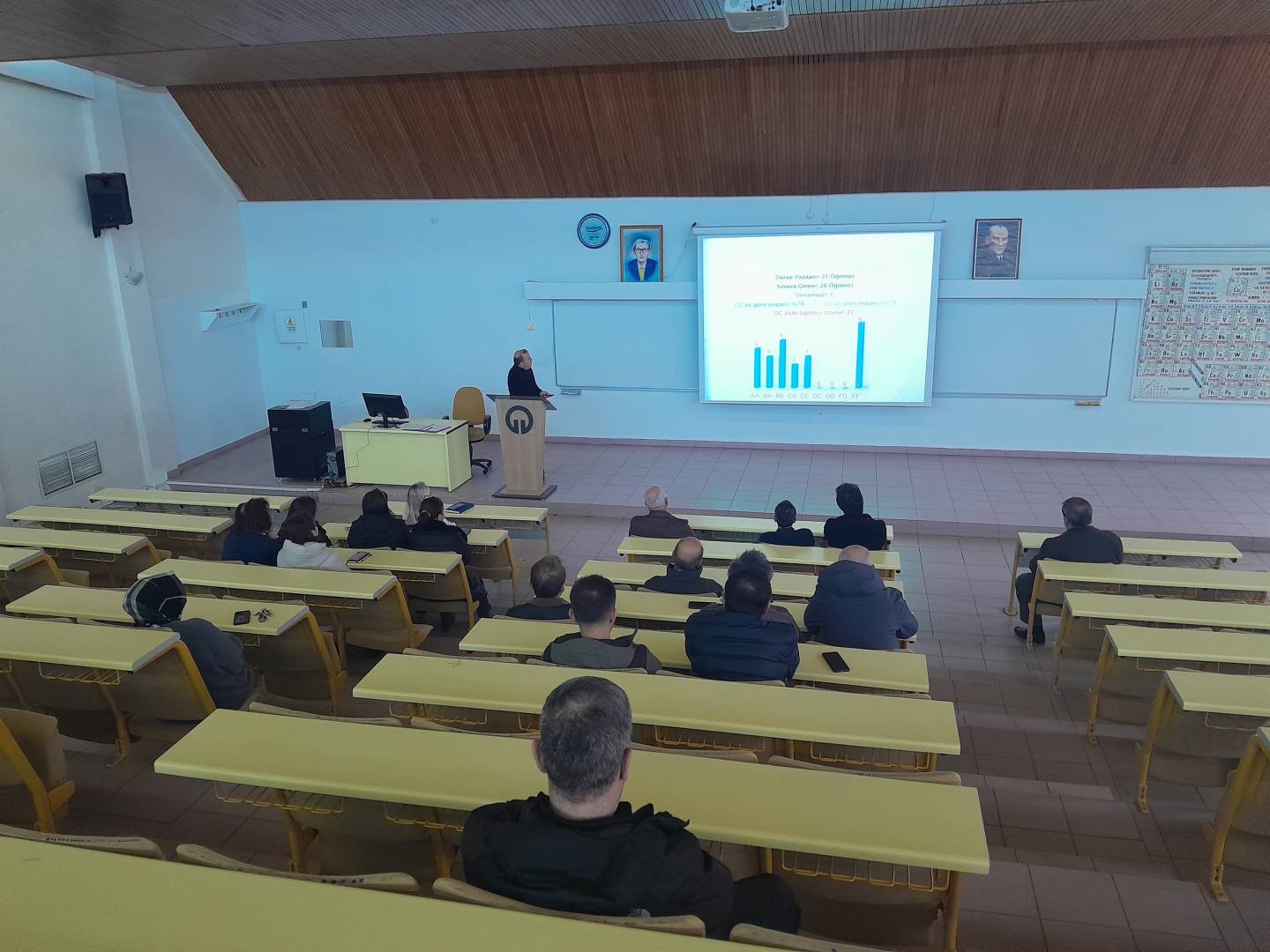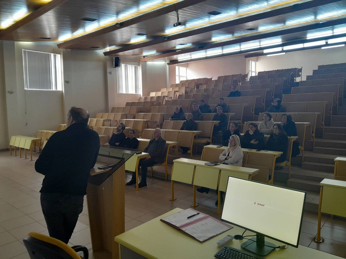 "İç Kontrol Eylem Planı izleme ve değerlendirme toplantısı sayısı" kapsamında Bölümümüzde 17 Mart 2026 tarihinde saat 12.00’de SRA Amfisinde, 2025-2026 Eğitim-Öğretim Yılı Güz Yarıyılına ilişkin Akademik Bölüm Kurulu Toplantısı gerçekleştirildi. Toplantı, Bölüm Başkanımız Prof. Dr. Sedat Keleş'in açılış konuşmasıyla başladı. Açılışta, geride bırakılan yarıyılın genel değerlendirmesine yer verilirken, bölümün akademik hedefleri, eğitim kalitesinin sürdürülebilirliği ve kurumsal gelişim perspektifleri vurgulandı.