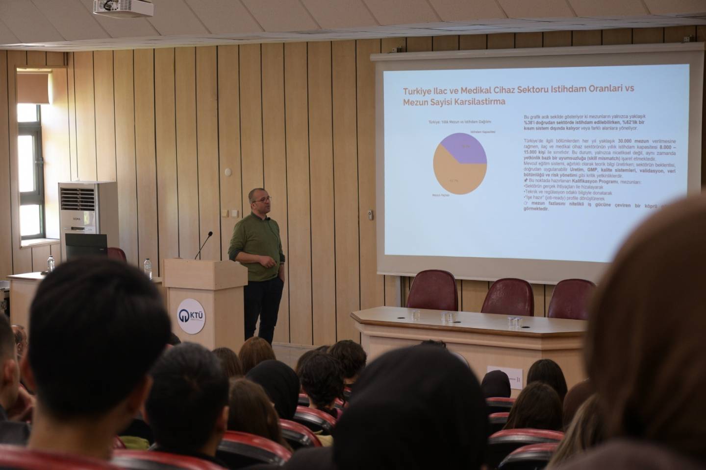 Etkinlikte ayrıca farmasötik üretim süreçleri, kalite kontrol mekanizmaları ve medikal cihaz geliştirme aşamalarına ilişkin temel bilgiler de paylaşıldı. Sektördeki güncel ihtiyaçlar doğrultusunda hangi becerilerin öne çıktığı ve genç mezunlardan beklentilerin neler olduğu detaylı şekilde ele alındı.