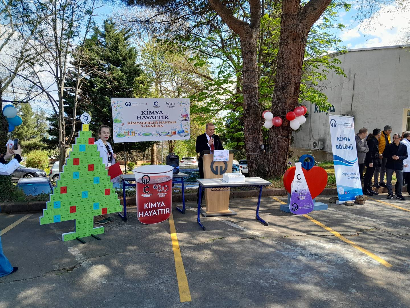 Şenlik alanında gerçekleştirilen açılış programı, protokol konuşmalarıyla devam etti. İlk olarak bölüm başkanımız Prof. Dr. Sedat Keleş söz alarak kimya biliminin önemine ve bu tür etkinliklerin akademik dayanışmaya katkısına değindi. Ardından Fen Fakültesi Dekanımız Prof. Dr. Ali Osman Beldüz konuşmasını gerçekleştirerek öğrenciler ve akademisyenler arasındaki etkileşimin güçlenmesinden duyduğu memnuniyeti dile getirdi.