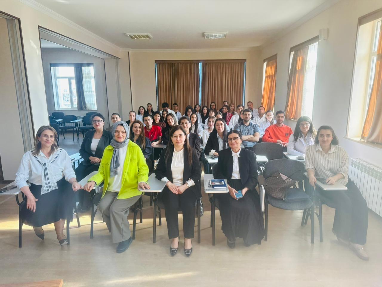 08 Nisan 2026 tarihinde Nahçıvan Devlet Üniversitesi ev sahipliğinde düzenlenen akademik etkinlikte, Bölümümüz Öğretim Üyesi Prof. Dr. Sevgi Kolaylı tarafından “Bilginin topluma yayılması amacıyla düzenlenen faaliyetler” kapsamında “Biyokimyada Güncel Yaklaşımlar” başlıklı bir seminer gerçekleştirildi. Üniversitenin ilgili fakülteleri ve araştırma birimlerinden akademisyenler, lisansüstü öğrenciler ve bilimsel çalışmalara ilgi duyan katılımcılar seminere yoğun ilgi gösterdi.