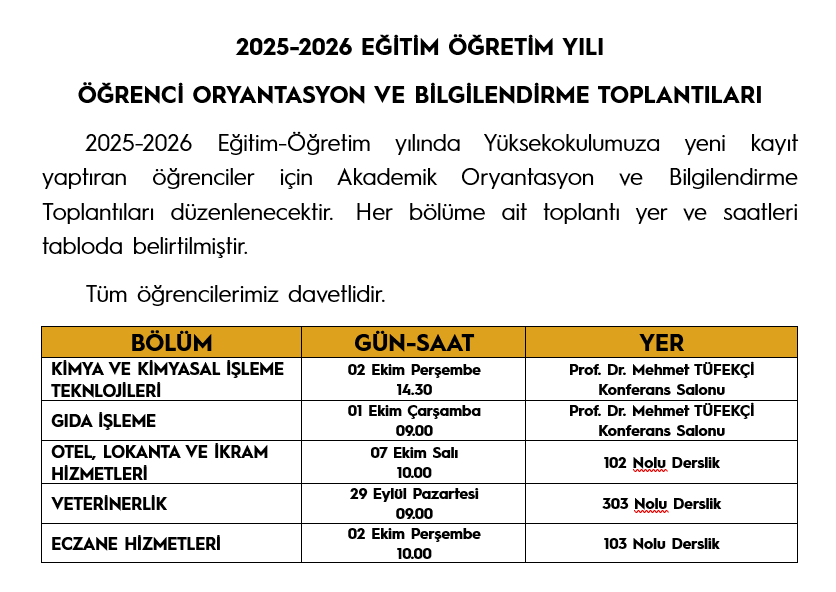 Öğrencilerimizin Dikkatine! Akademik Oryantasyon ve Bilgilendirme Toplantıları