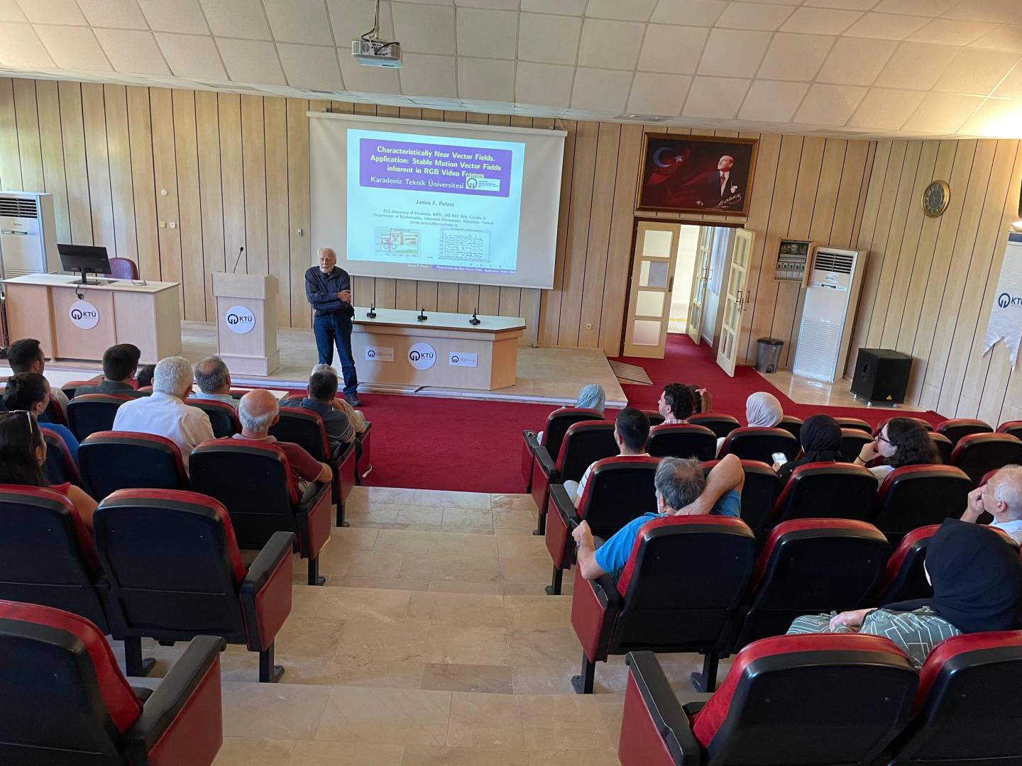 Bölümümüze yurt dışından bilim insanlarının katılımlarıyla fakültemiz Nazım Terzioğlu Amfisinde 24 Haziran 2025 tarihinde iki oturumlu seminer serisi gerçekleştirildi. Etkinliğin ilk oturumunda Kanada Manitoba Üniversitesi Elektirik ve Bilgisayar Mühendisliği Bölümü öğretim üyesi Prof. Dr. James Francis Peters tarafından vektör analizinin önemli konularından vektör alanlarına yönelik yakın vektör alanları ve çeşitli uygulamaları üzerine "Near Vector Fields Application: Motion Near Stable Vector Fields Emanating From Infrared Video Frames" başlıklı sunumu gerçekleştilirken, ikinci oturumda Kanada Winnipeg Üniversitesi Bilgisayar Bilimleri Bölümü öğretim üyesi Prof. Dr. Sheela Ramanna tarafından makine öğrenimine dair "Tolerance-Based Granular Computing: Applications in Multimodal Machine Learning" başlıklı sunumu ile etkinlik tamamlandı.