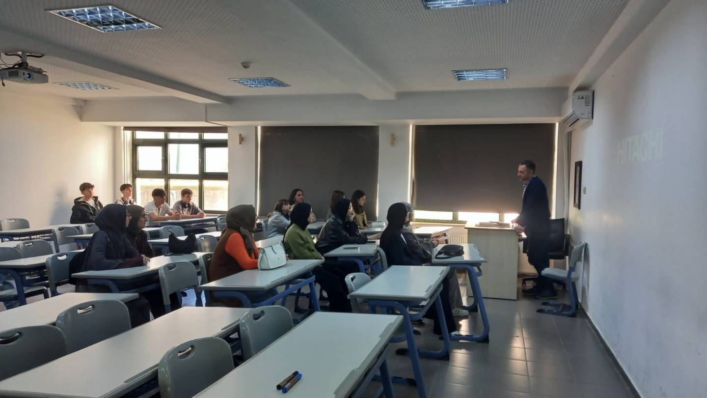 Ziyaret kapsamında, Dr. Öğr. Üyesi Ali Faruk ÖZYAŞAR tarafından Fakültemizin tanıtımı gerçekleştirildi. Öğrencilere eğitim-öğretim faaliyetlerimiz ve fakültemizin sunduğu olanaklar hakkında bilgi verildi. Ziyaret süresince öğrenciler, üniversite yaşamı ve akademik süreçler hakkında merak ettikleri soruları yöneltme fırsatı buldular. Etkinlik, samimi ve verimli bir atmosferde tamamlandı.