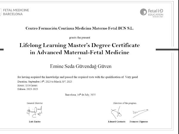 "İleri Düzey Maternal Fetal TIP MASTER DERECE" eğitimini başarı ile tamamladı.