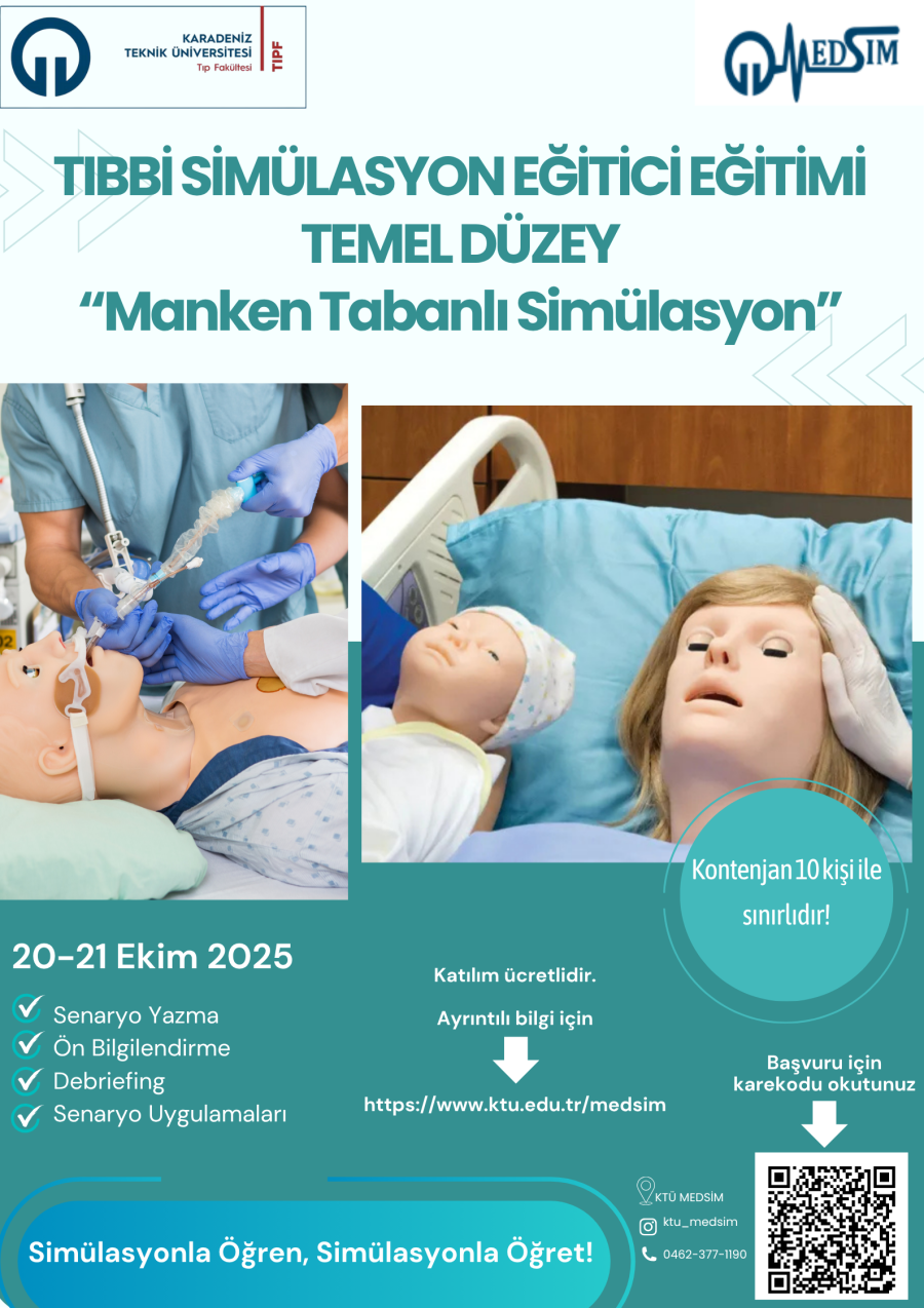 Eğitim Programı Karadeniz Teknik Üniversitesi İyi Hekimlik Uygulamaları ve Simülasyon Merkezi’nde gerçekleşecektir.