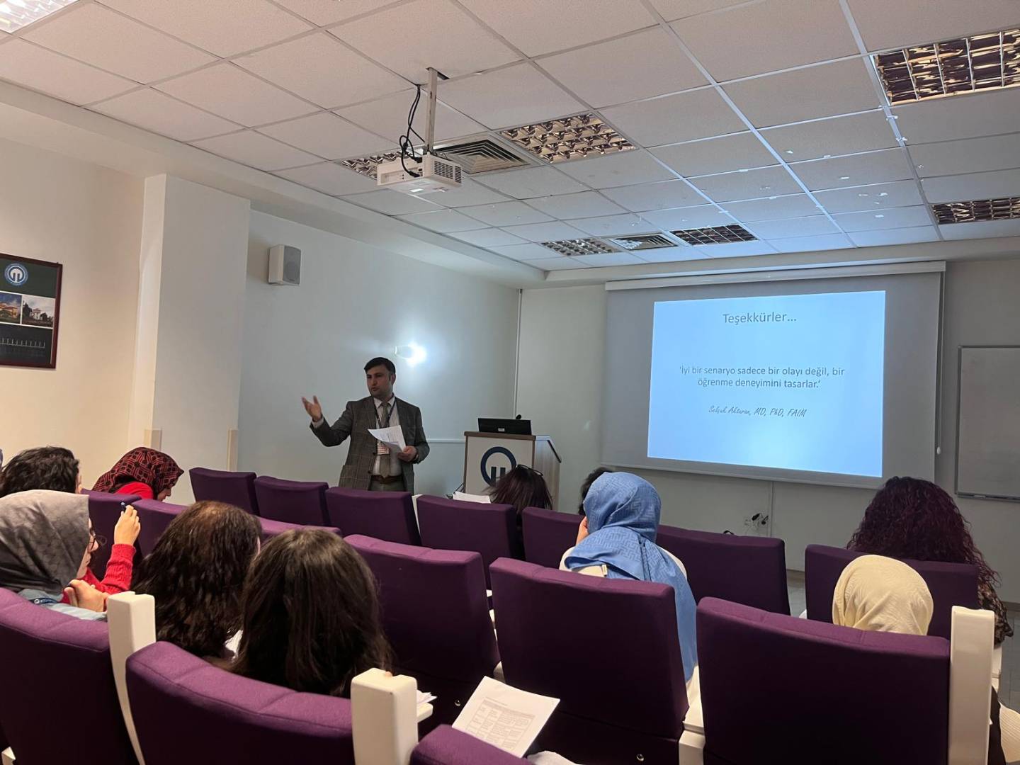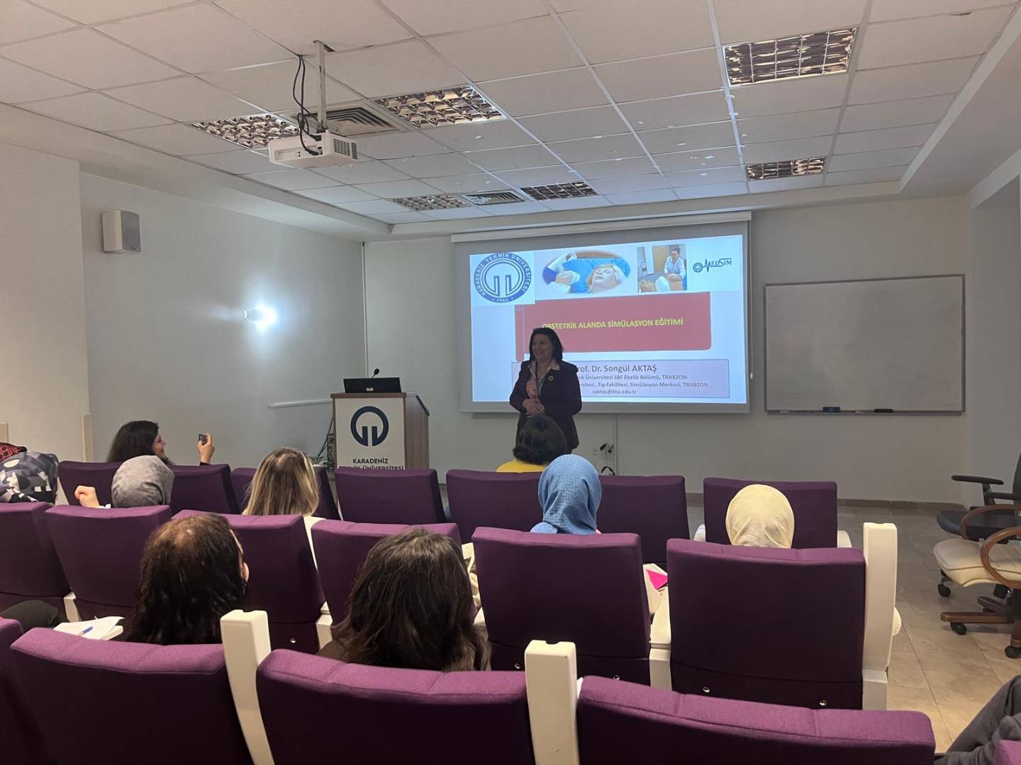 İki gün süren eğitim programı, sağlık profesyonellerinin obstetrik alanda simülasyon temelli eğitim planlama, uygulama ve değerlendirme yetkinliklerini geliştirmeyi amaçlamıştır. Program kapsamında; tıbbi simülasyonun temel kavramları, simülasyon türleri ve teknik donanım, obstetrik alanda simülasyon eğitiminin bilişsel ve psikomotor çıktıları, senaryo yazımının temel bileşenleri, prebriefing süreci, debriefing modelleri ve simülasyonda ölçme-değerlendirme yöntemleri ele alınmıştır.