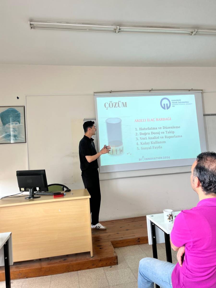 Our second-year student Harun Balkaya delivered a presentation in our department on his “Smart Medication Tracking System and Smart Medication Cup for Elderly Patients” project. In his talk, he discussed the project idea, how the application to Bioinovation was submitted, and the overall project process.