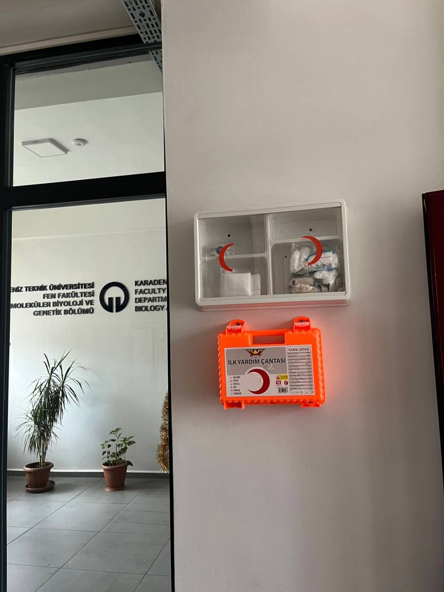 KTÜ Moleküler Biyoloji ve Genetik Bölümü, güvenli çalışma ortamını geliştirmeye yönelik iyileştirme çalışmaları kapsamında öğrenci laboratuvarı, araştırma laboratuvarı ve personel katına yeni ilk yardım çantaları yerleştirdi. Yapılan düzenleme ile laboratuvar ortamlarında oluşabilecek acil durumlara daha hızlı ve etkili müdahale edilmesi amaçlandı.