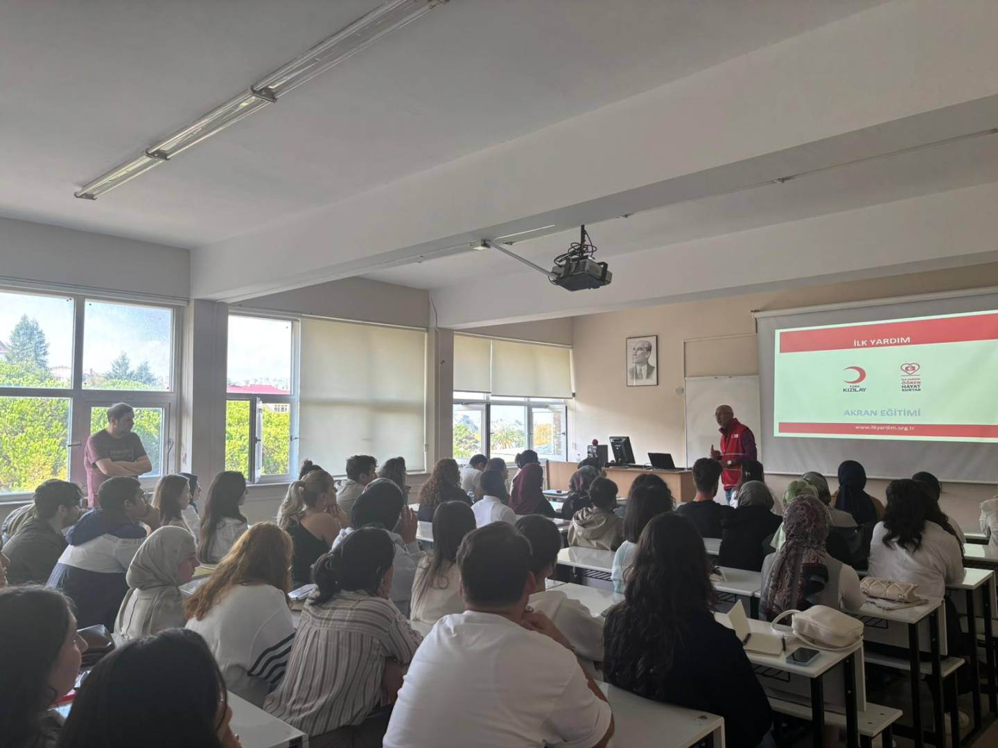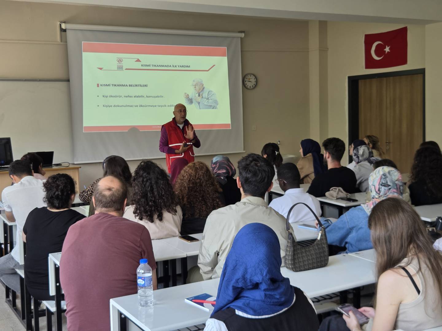 Eğitim süresince katılımcılar, ilk yardımın temel prensipleri hakkında teorik bilgi edinmenin yanı sıra uygulamalı çalışmalar yaparak pratik becerilerini geliştirme fırsatı buldular. Böylece, hem akademik yaşamda hem de günlük hayatta karşılaşılabilecek acil durumlara karşı bilinçli ve doğru müdahale etmenin önemi bir kez daha vurgulandı.