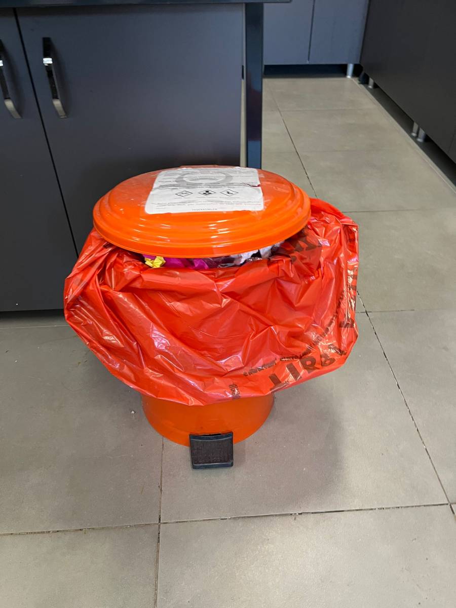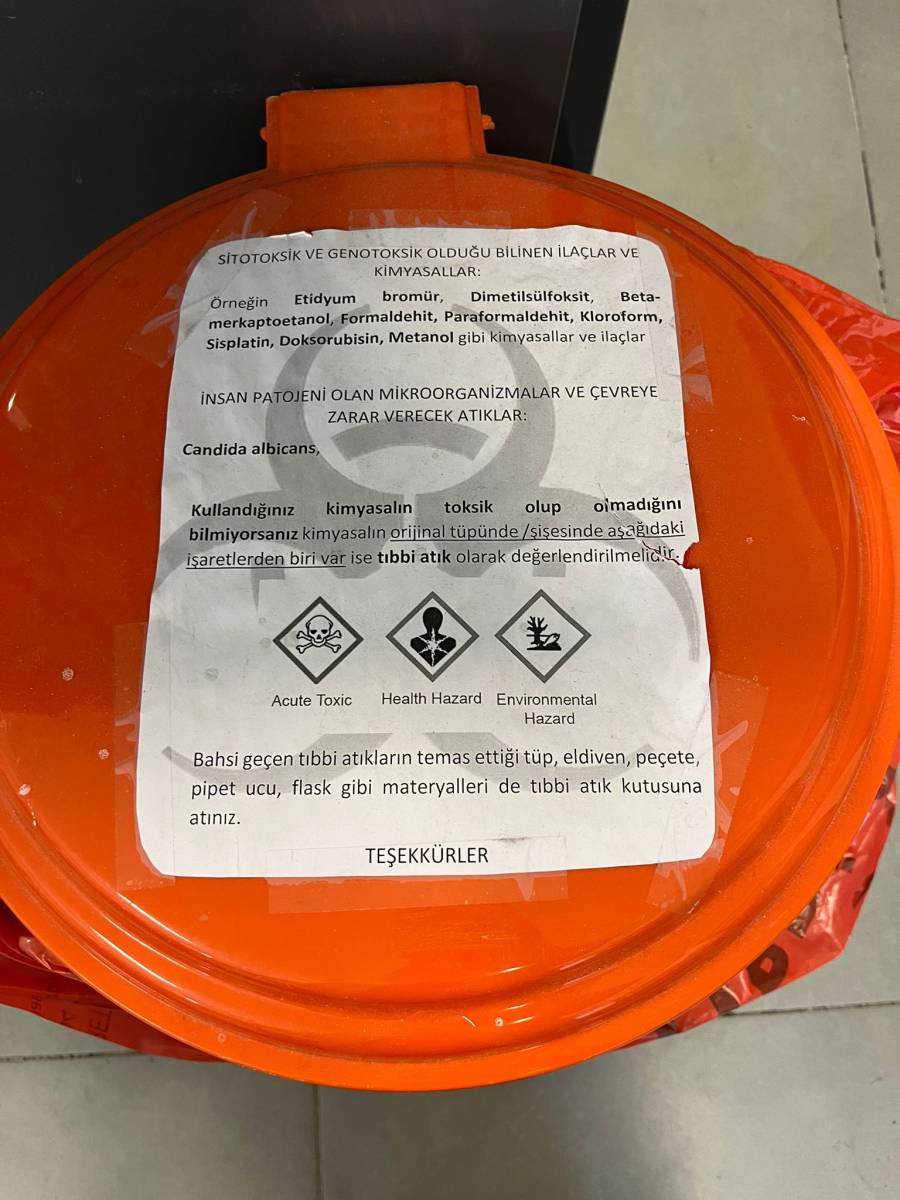 Bölümümüz araştırma laboratuvarına, çevreye ve insan sağlığına zarar vermemek amacıyla kimyasal atık konteyneri ve tıbbi atık kutuları yerleştirildi. Bu uygulama, laboratuvar çalışmalarında oluşan atıkların güvenli şekilde toplanmasını sağlayarak sürdürülebilir araştırma ortamına katkı sunmaktadır.