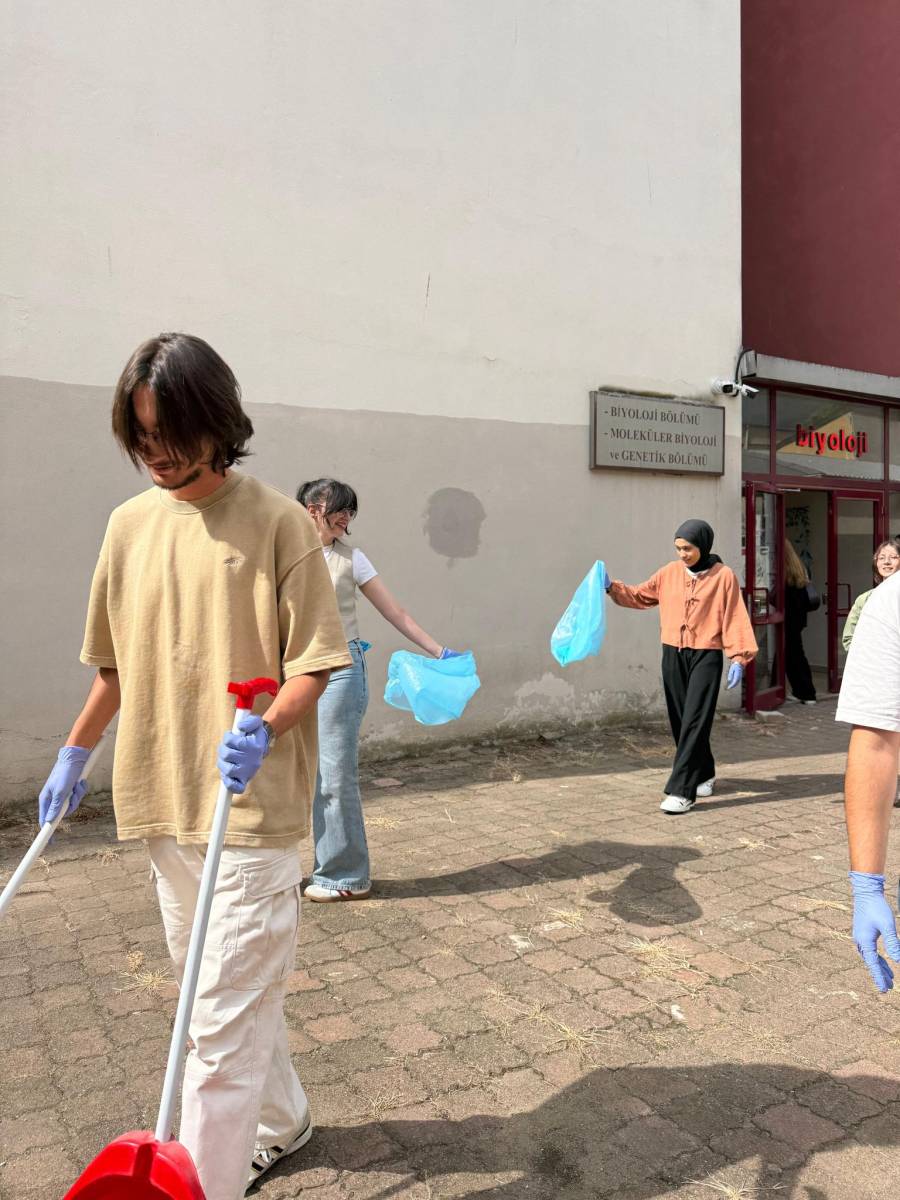 Çevre kirliliğine dikkat çekmek ve sürdürülebilir yaşam konusunda farkındalık oluşturmak amacıyla düzenlenen etkinlikte, bölümümüzün çevresinde bulunan kantin çevresi ve bölüm binamızın çevresi öğrencilerimizin gönüllü çalışmalarıyla temizlendi. Akademisyenlerimizin de aktif katılımıyla etkinlik, nesiller arası iş birliğinin ve dayanışmanın güzel bir örneğini ortaya koydu.