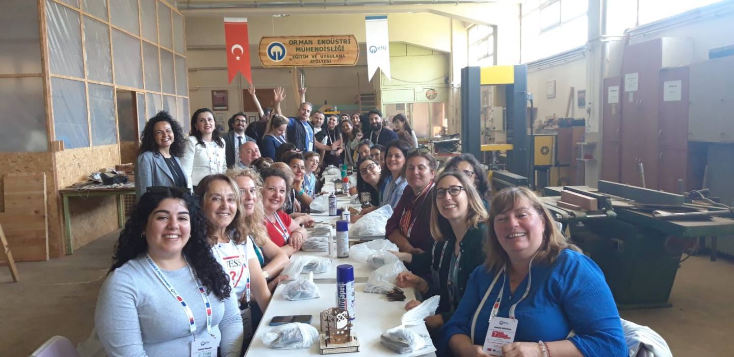 KTÜ Erasmus 8. Uluslar arası personel hareketliliği kapsamında 11 farklı ülkeden 25 farklı üniversite temsilcilerinin katıldığı etkinlikte bölümümüzde Doç Dr. Samet DEMİREL, Arş. Gör. Dr. Abdullah Uğur BİRİNCİ hocalarımız misafirlerimize kısa bir tanıtım yaparak kendilerine geleneksel serender hediyelik eşya üretim ve kurulumu gösterilmiş, etkinlik sonunda misafirlerimizle toplu resim çekilerek ziyaretleri memnuniyetle nihayetlendirilmiştir. Orman Endüstri Mühendisliği Bölümü olarak, bu etkinlikte rol alan hocalarımıza, Birdal KAZAZ ve tüm atölye çalışanlarına, yardımları geçen öğrencilerimize ve bölüm çalışanlarımıza teşekkürlerimizi sunuyoruz.