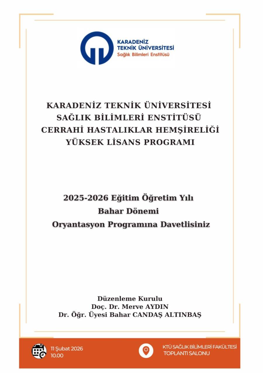 2025-2026 Eğitim Öğretim Yılı Güz Dönemi Cerrahi Hastalıkları Hemşireliği Anabilim Dalı Yüksek Lisans Oryantasyon Programı Gerçekleştirilmiştir.