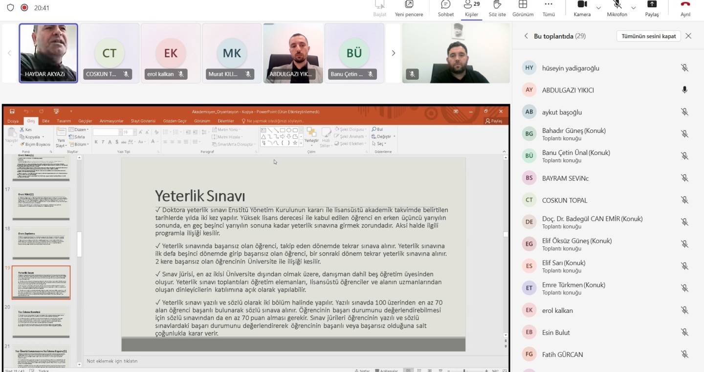 Enstitü Müdürümüz Prof. Dr. Haydar AKYAZI'nın yönetiminde gerçekleştirilen programa katılım sağlayan başta akademisyenlerimiz olmak üzere, vermiş oldukları bilgilerle programa katkı sağlayan Müdür Yardımcılarımız Doç. Dr. Hüseyin YADİGAROĞLU ve Dr. Öğr. Üyesi Abdülgazi YIKICI’ya ve Enstitü Sekreterimiz Esin BULUT’a teşekkür ediyoruz.