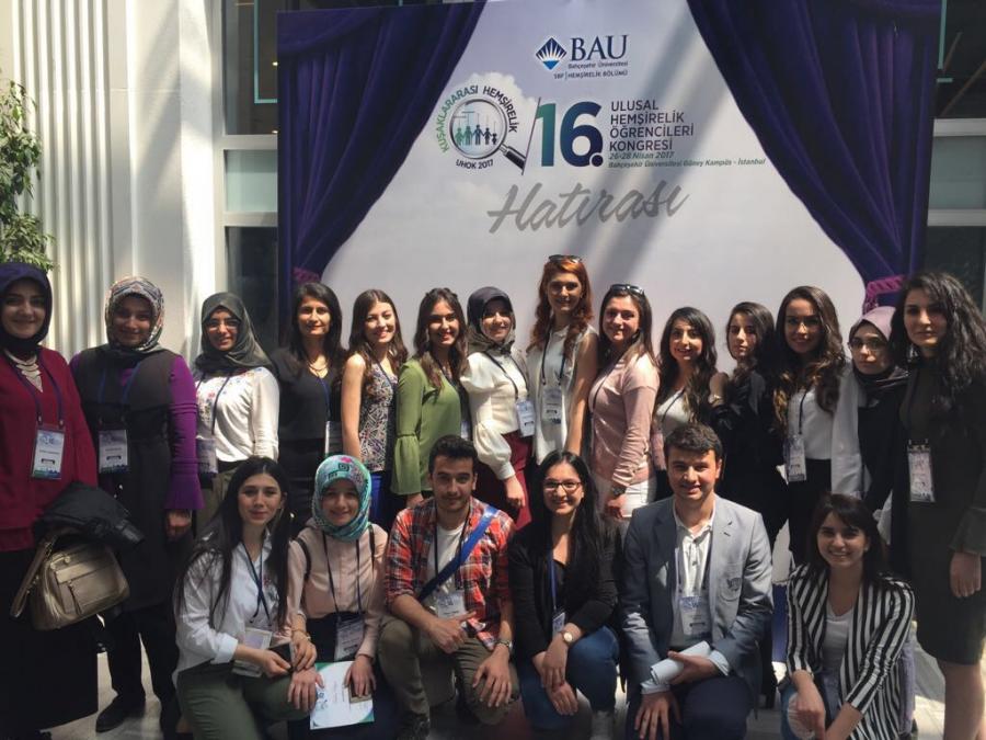 Hemşirelik Bölümü öğrencileri ve Arş. Gör. Bahar CANDAŞ, 26-28 Nisan 2017 tarihleri arasında İstanbul Bahçeşehir Üniversitesi’nde düzenlenen “16. Ulusal Hemşirelik Öğrencileri Kongresi” kongresine 2 sözel ve 5 poster bildiri ile katıldılar.