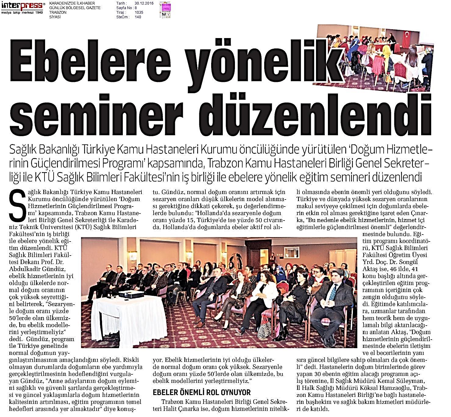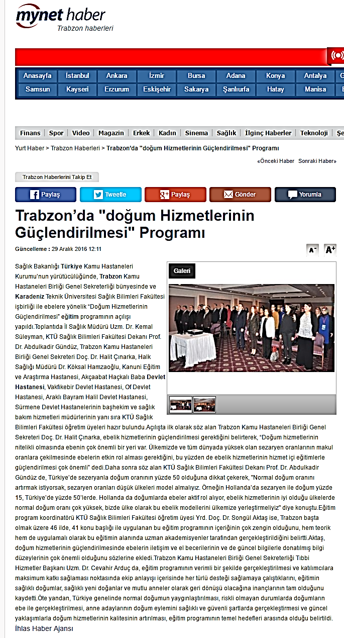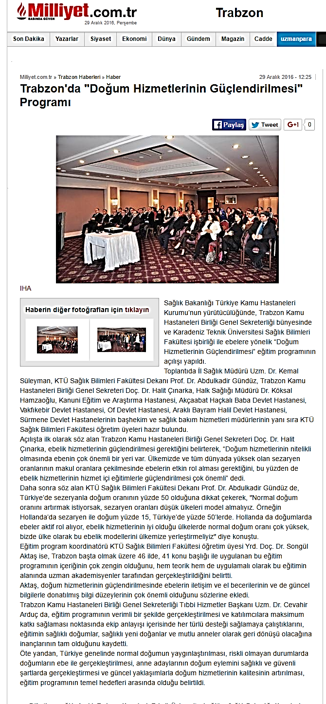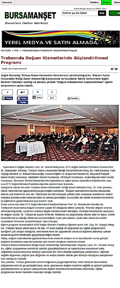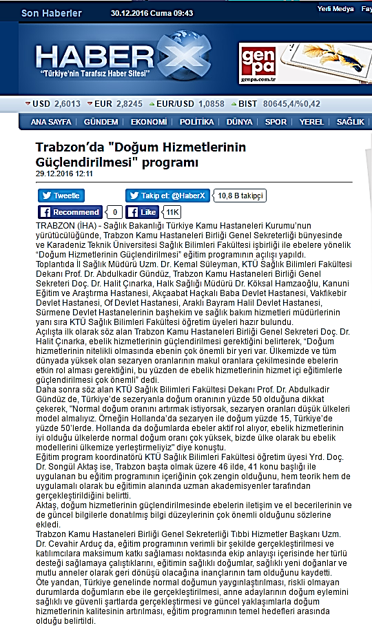 Yerel ve Ulusal Basında " Güncel Yaklaşımlarla Doğum Hizmetlerinin Güçlendirilmesi" Eğitimi