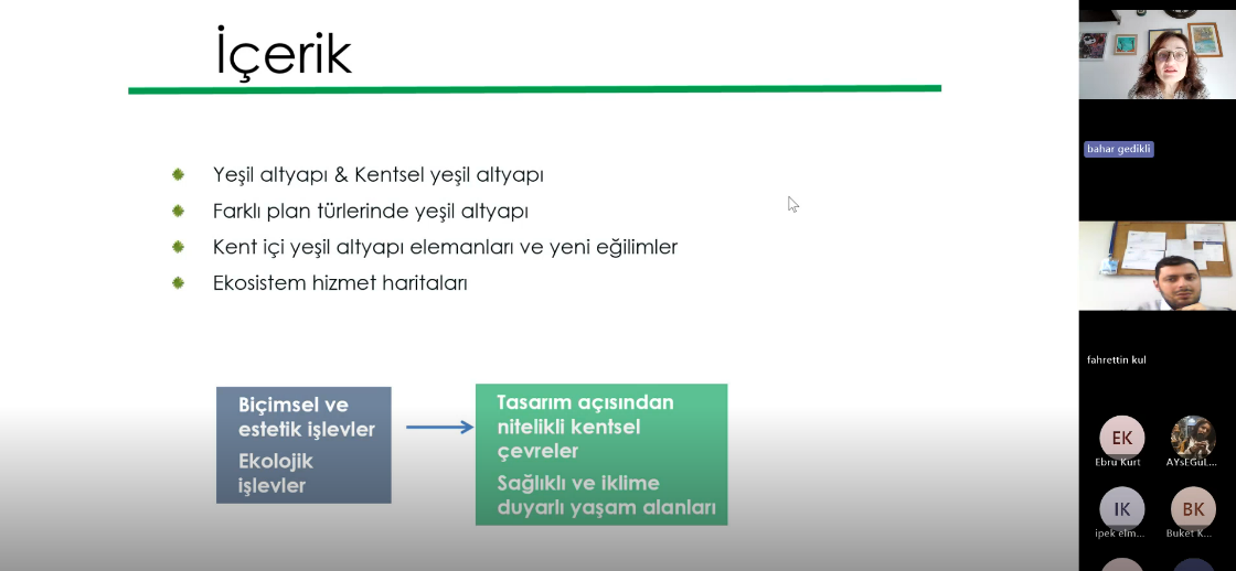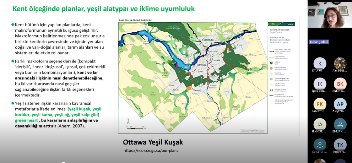 iklime duyarlı kentleşme, yeşil altyapı sistemleri, ekolojik planlama ve sürdürülebilirlik ilkeleri üzerine kapsamlı bir değerlendirme sunarak katılımcılara ilham verici bir perspektif kazandırdı.