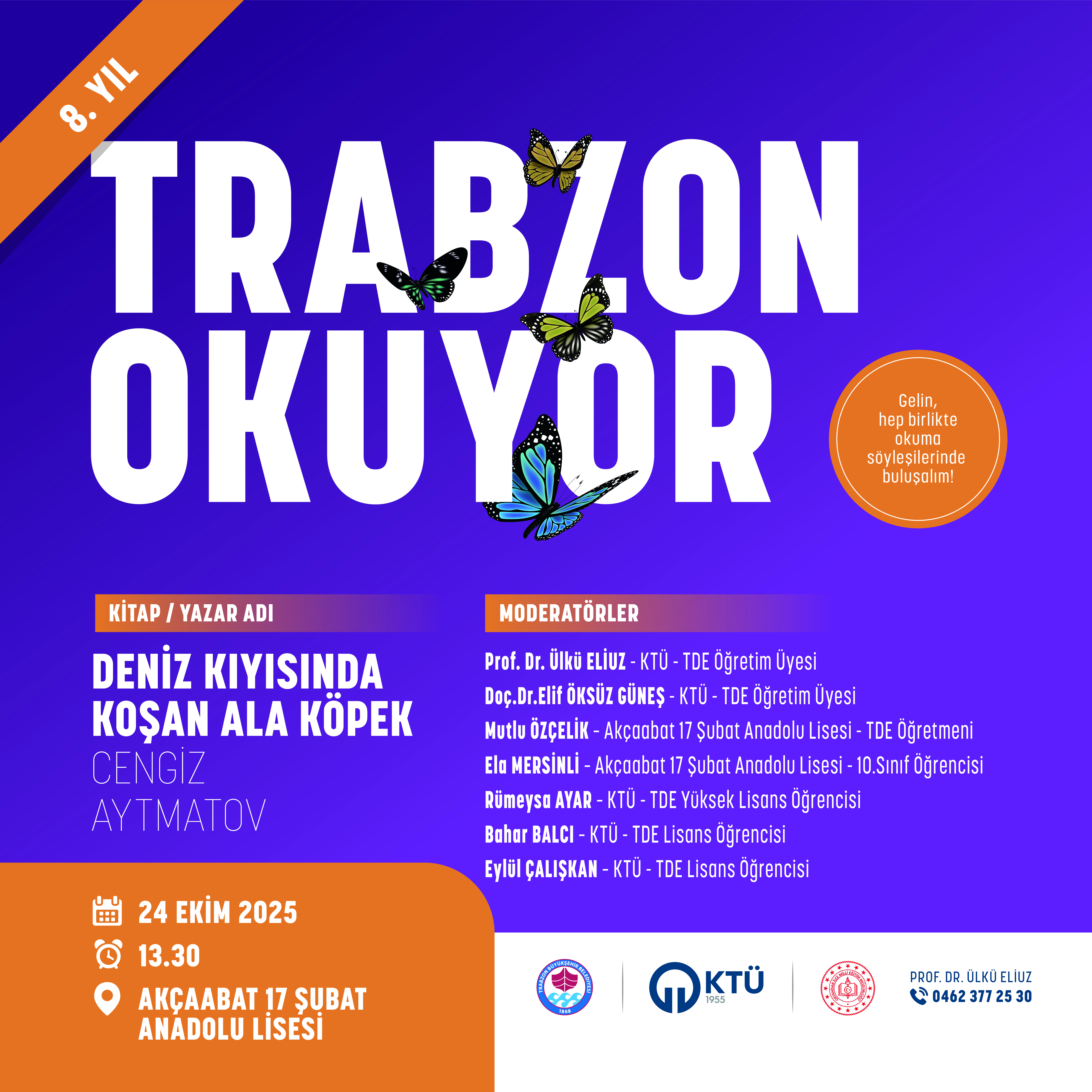 Trabzon Okuyor projesi kapsamında Cengiz Aytmatov'un ''Deniz Kıyısında Koşan Ala Köpek'' adlı eseri tartışılacaktır. Detaylı bilgiye buradan ulaşabilirsiniz: