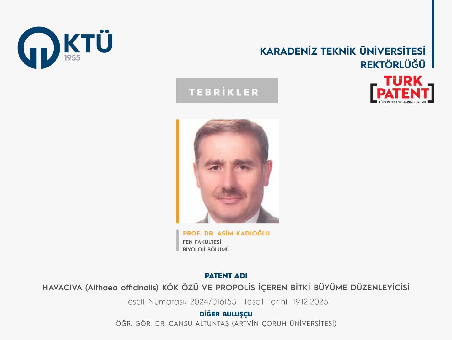Patent başvurusu tescillenen akademisyenimizi ve buluşçuyu tebrik eder, sağladıkları katkılardan ötürü akademisyenimize ve buluşçuya teşekkür ederiz.