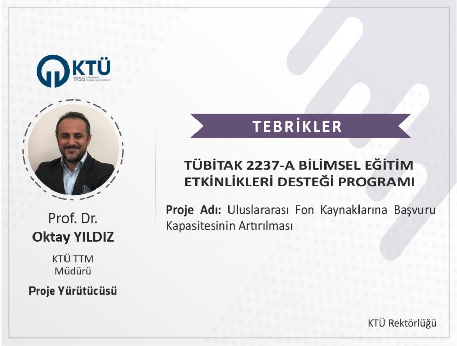 Üniversitemiz Eczacılık Fakültesi Öğretim Üyesi Prof. Dr. Oktay YILDIZ'ın "Uluslararası Fon Kaynaklarına Başvuru Kapasitesinin Artırılması" başlıklı projesi “TÜBİTAK 2237-A Bilimsel Eğitim Etkinlikleri Desteği” Programı kapsamında desteklenmiştir.