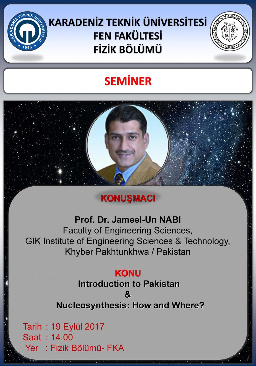 Seminer "Introduction to Pakistan & Nucleosynthesis: How and Where?"