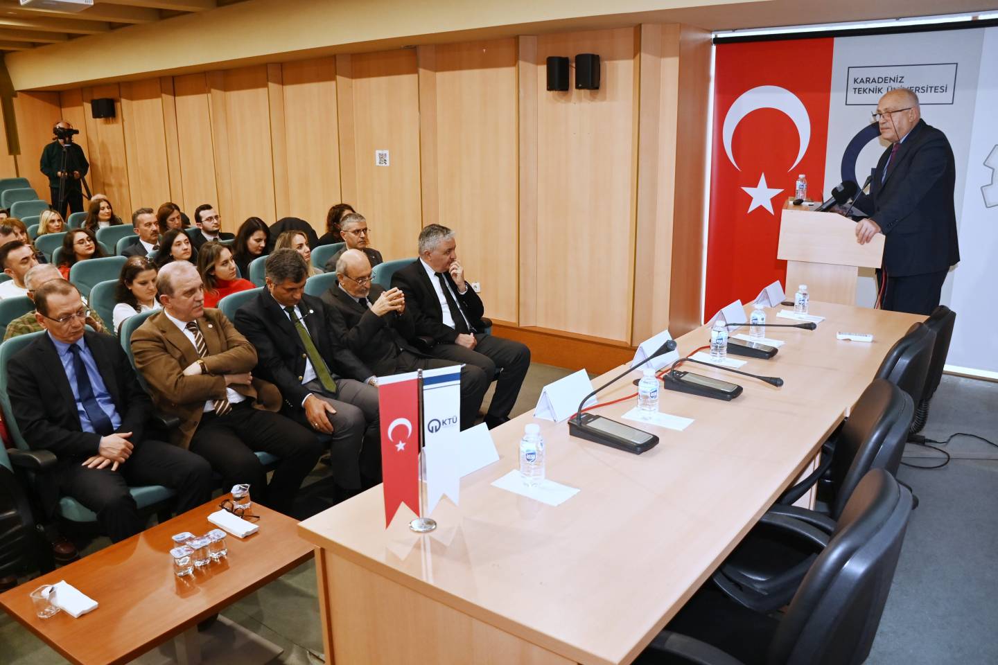 Türkiye Mühendis ve Mimar Odaları Birliği (TMMOB) Şehir Plancıları Odası Trabzon Şubesi öncülüğünde düzenlenen panele; Trabzon Vali Yardımcısı Ali YILMAZ, Trabzon Büyükşehir Belediye Başkan Yardımcısı Ahmet Yüksel GÜLAY, Üniversitemiz Rektörü Prof. Dr. Hamdullah ÇUVALCI, Üniversitemiz Mimarlık Fakültesi Dekanı Prof. Dr. Cenap SANCAR, Harita Mühendisleri Odası Başkanı Prof. Dr. Ebru ÇOLAK ile TMMOB Trabzon İl Koordinasyon Kurulu’na bağlı meslek odalarının temsilcileri, kamu kurum ve kuruluşları ile sivil toplum kuruluşlarının temsilcileri, akademisyenler ve öğrenciler katıldı.