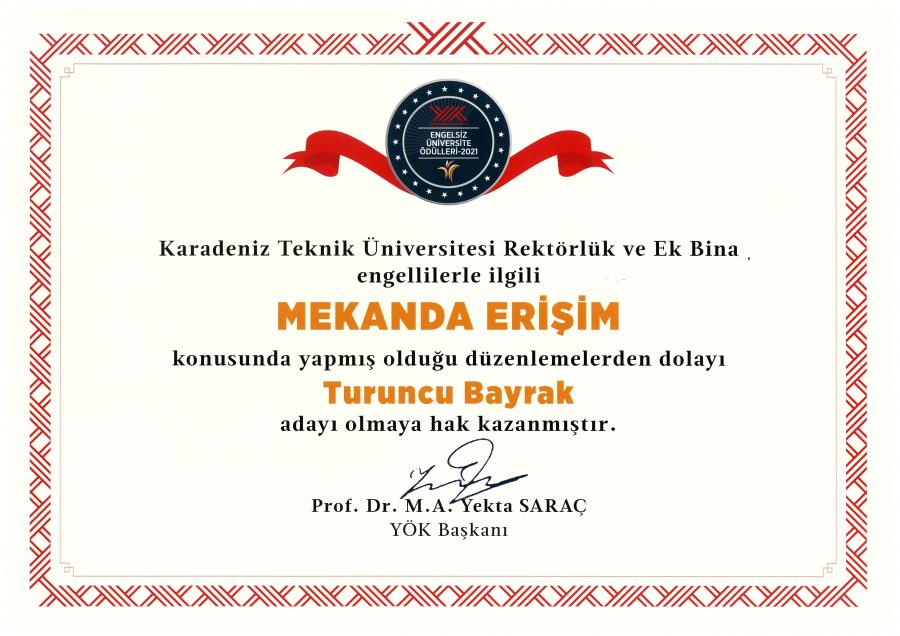 Üniversitemiz, Engelsiz Üniversite Ödülleri 2021 kapsamında;