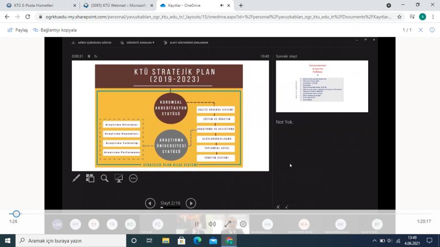 Çevrim içi olarak düzenlenen toplantıda, Rektör Yardımcılarımız; Prof. Dr. Akif CİNEL, Prof. Dr. Halil İbrahim OKUMUŞ ve Prof. Dr. Cemil RAKICI da hazır bulundu.