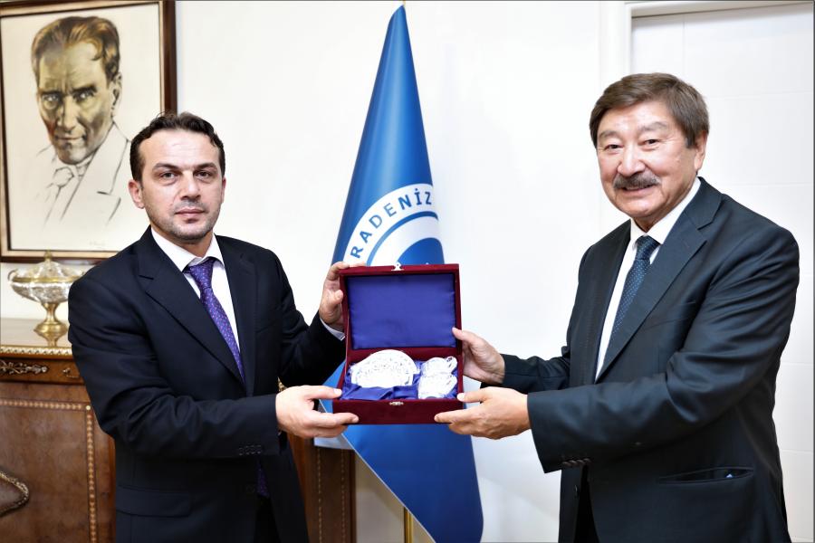 TÜRKSOY-Uluslararası Türk Kültürü Teşkilatı Sekreteri Düsen KASEINOV, Azerbaycan temsilcisi Elçin GAFFARLI ve Trabzon Temsilcileri 16 Ekim 2020 tarihinde Rektörlüğümüzü ziyaret ettiler.