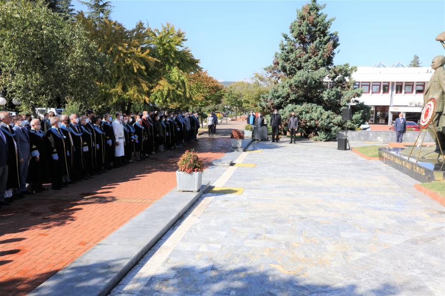 Akademik ve idari personelimizin katılımı ile birlikte Rektörümüz Prof. Dr. Hamdullah ÇUVALCI’nın çelenk sunumuyla başlayan tören, saygı duruşunun ve İstiklal Marşı’nın okunmasının ardından sona erdi.