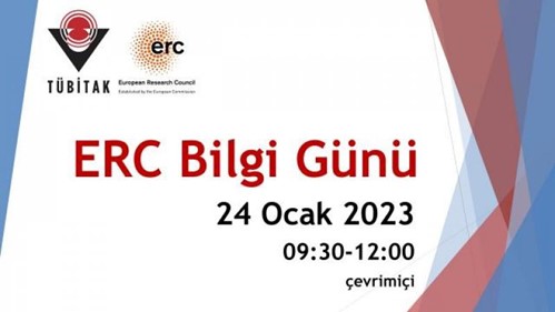 24 Ocak 2023 tarihinde TÜBİTAK ERC Ulusal İrtibat Noktaları tarafından çevrimiçi olarak ERC Bilgi Günü düzenlenecektir. Bilgi Günü kapsamında ERC 2023 Çalışma Programı ve çağrıları hakkında bilgi verilecektir. Starting, Consolidator ve Advanced Grant çağrıları özelinde proje yazımı için öneriler paylaşılacaktır. Ayrıca başvuru hazırlığında olan araştırmacılarımız soru sorma imkanı bulabilecektir.