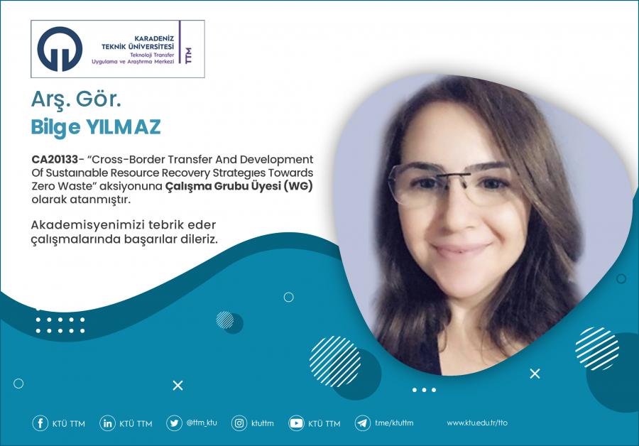 Üniversitemiz Orman Fakültesi Orman Endüstri Mühendisliği Bölümü öğretim üyesi Arş. Gör. Bilge YILMAZ, COST Programı’nın “CA20133 - Cross-Border Transfer And Development Of Sustaınable Resource Recovery Strategıes Towards Zero Waste” aksiyona Çalışma Grubu Üyesi (WG) olarak atanmıştır.