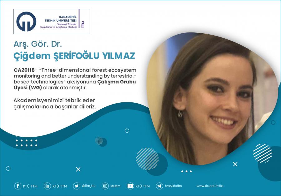 Üniversitemiz Mühendislik Fakültesi Harita Mühendisliği Bölümü öğretim elemanı Arş. Gör. Dr. ÇİĞDEM ŞERİFOĞLU YILMAZ, COST Programı’nın “CA20118 - Three-dimensional forest ecosystem monitoring and better understanding by terrestrial-based technologies” aksiyona Çalışma Grubu Üyesi (WG) olarak atanmıştır.