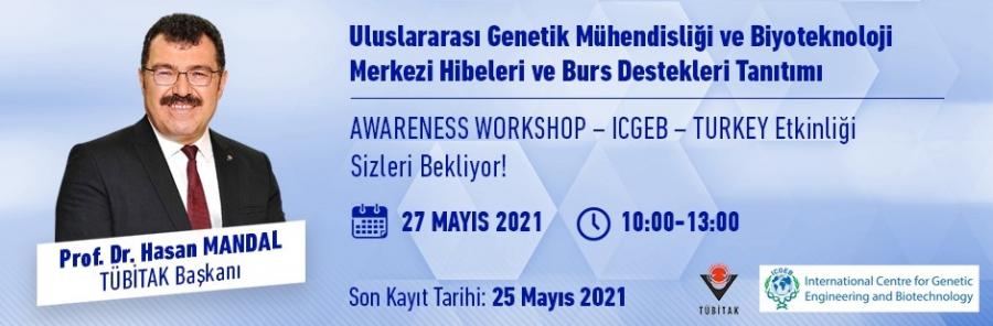Ülkemizden daha fazla araştırmacının ICGEB Hibe Programları ve Burs Destekleri’nden faydalanması amacıyla, 27 Mayıs 2021 Perşembe günü 10:00-13:00 saatleri arasında “Awareness Workshop ICGEB – TURKEY” Etkinliği düzenlenecektir.