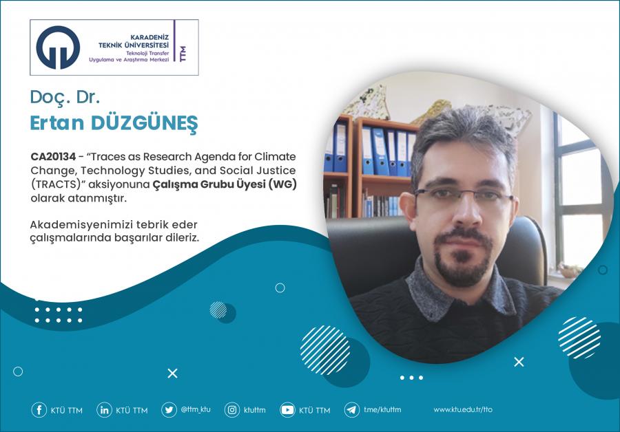 Üniversitemiz Orman Fakültesi Peyzaj Mimarlığı Bölümü öğretim üyesi Doç. Dr. Ertan DÜZGÜNEŞ, COST Programı’nın “CA20134 - Traces as Research Agenda for Climate Change, Technology Studies, and Social Justice (TRACTS)” aksiyonuna Çalışma Grubu Üyesi (WG) olarak atanmıştır.