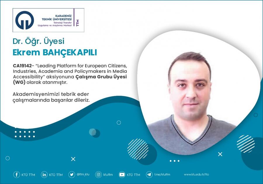 Üniversitemiz İktisadi ve İdari Bilimler Fakültesi Yönetim Bilişim Sistemleri bölümü öğretim üyesi Dr. Öğr. Üyesi Ekrem BAHÇEKAPILI, COST Programı’nın “CA19142 - Leading Platform for European Citizens, Industries, Academia and Policymakers in Media Accessibility” aksiyona Çalışma Grubu Üyesi (WG) olarak atanmıştır.