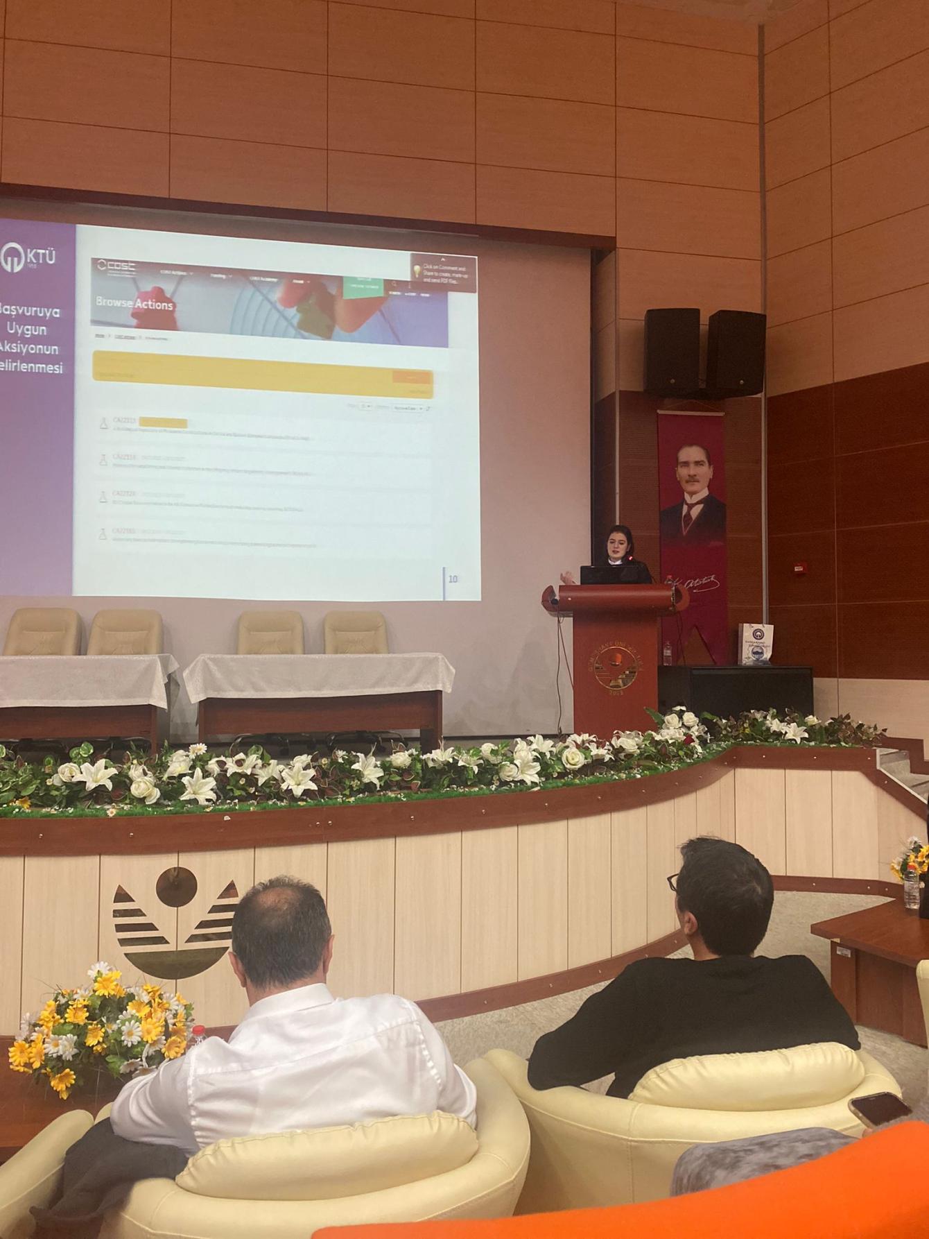 KTÜ TTM ve Gümüşhane Üniversitesi Teknoloji Transfer Ofisi Uygulama ve Araştırma Merkezi iş birliğiyle düzenlenen etkinlikte; Öğr. Gör. Kerim SÖNMEZ tarafından “Fikri ve Sınai Mülkiyet Hakları” ve Öğr. Gör. Gözde SAĞLAM tarafından “COST Programı” bilgilendirme sunumları gerçekleştirilmiştir.