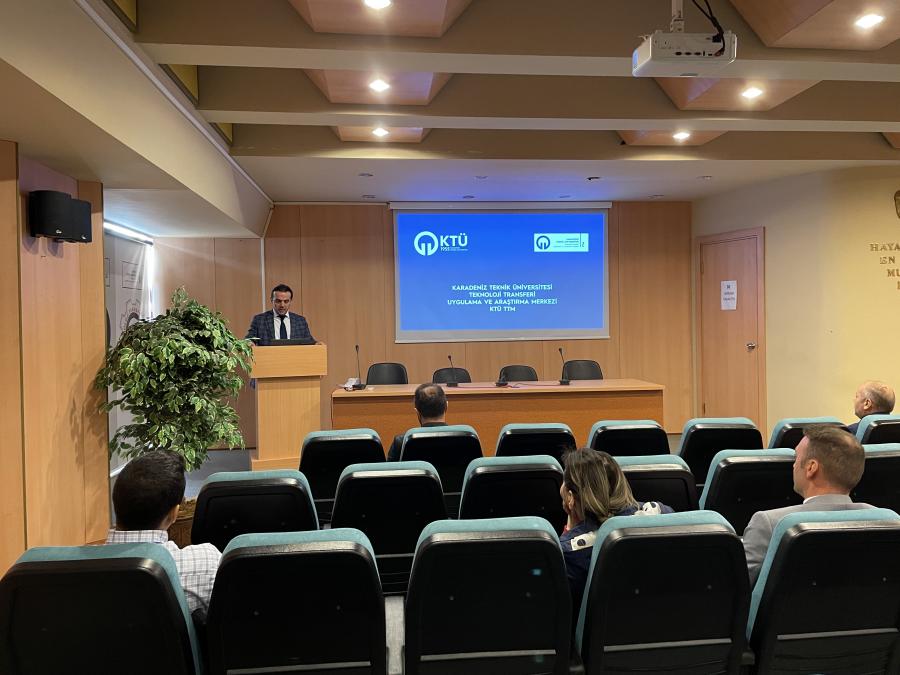 KTÜ TTM Müdürü Prof. Dr. Oktay Yıldız, Merkezimizin 2022 yıllık faaliyetleri hakkında katılımcılara bilgi aktardı. Sunumunda 2022 yılında halihazırda 140’a yakın etkinlik/eğitim düzenlendiğini, personelin 100’e yakın eğitime/etkinliğe katılım sağladığını, Üniversitemiz akademisyenlerinin projelerine/fikirlerine çok çeşitli destekler sağlandığını, bu sayede KTÜ’nün ulusal kaynaklardan desteklenen 30 projesinin kabul edildiğini, bu projelerin bütçesinin yaklaşık 14 Milyon TL olduğunu, uluslararası kaynaklardan desteklenen 7 projesinin kabul edildiğini ve bütçelerinin yaklaşık 23Milyon TL olduğunu belirtti. Öte yandan sunumunda üniversite-sanayi iş birliği çalışmalarını geliştirmek için gerçekleştirilen çalışmalara da değinmiş olup, bu bağlamda akademisyen/firma ziyaretleri, sözleşme bazlı araştırma çalışmaları, eşleştirme çalışmaları gerçekleştirildiğini bu sayede kamu fonları ile 30, özel sektör fonları ile 28 projenin desteklenerek çalışmaları sürdürdüğünü ve bu projelerin toplam bütçesinin 10 milyon TL’nin üzerinde olduğunu belirtti. KTÜ TTM tarafından yönetilen KTÜ Fikri Sınai Mülkiyet Hakları Politikası çerçevesinde 2022 yılı itibariyle 220’den fazla buluş sahibi, 116 ulusal patent başvurusu, 41 uluslararası patent başvurusu yapmış olduğunu, tescilli patentlerin ticarileşmesi için çalışmaların sürdüğünü belirtti. Merkez tarafından öğrenci ve girişimcilere de çok aktif destek verildiğini belirtilmiş olup, uygulanan TÜBİTAK Projesi sayesinde 1,5 yılda 16 girişimcinin şirketleşmesine destek olunduğunu, öğrenci projelerinde de başarı oranının %95’e varan seviyede olduğunu belirtti.